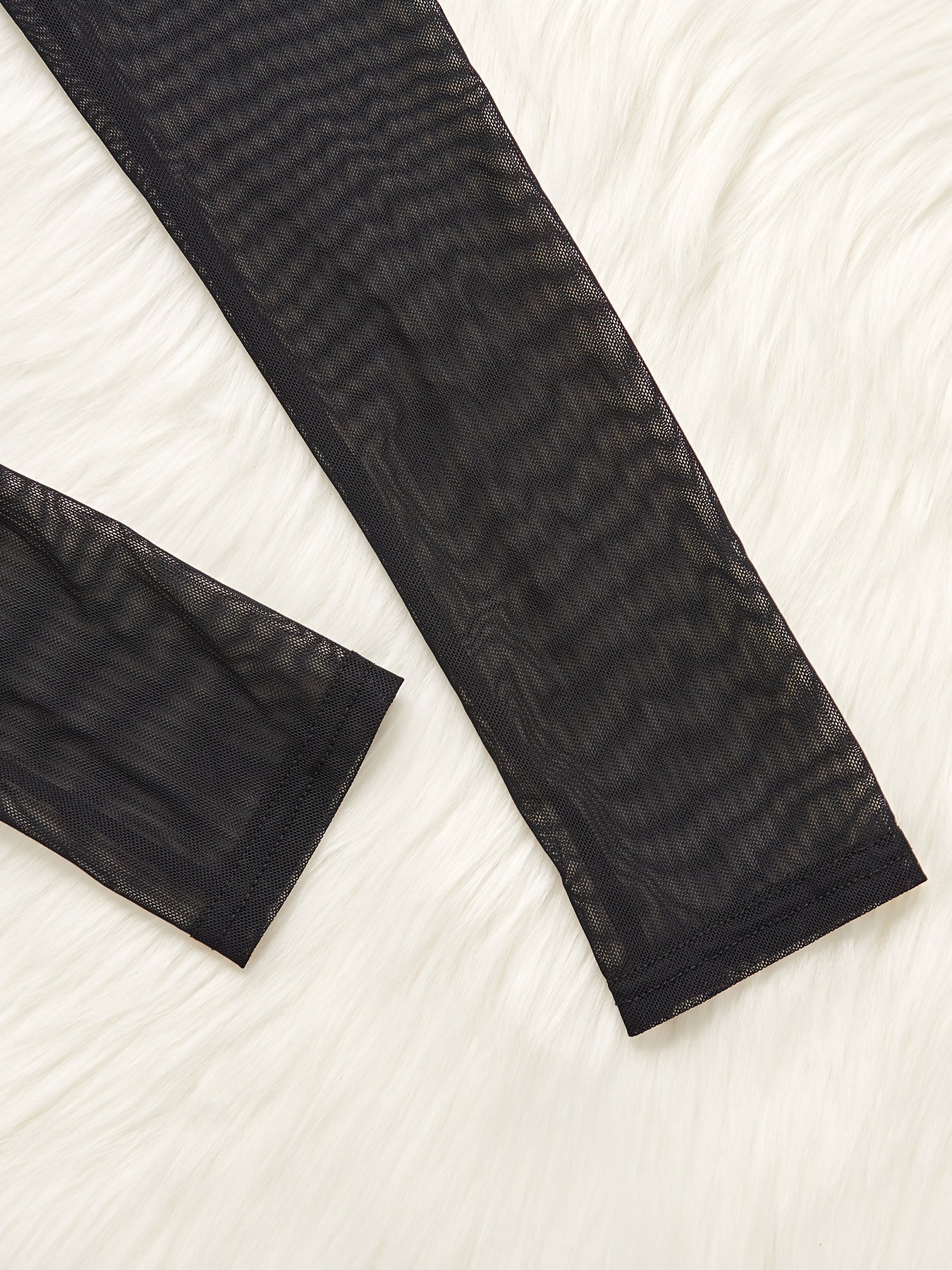 Women's Long Sleeve Mesh Teddy Lingerie with Lace Trim
