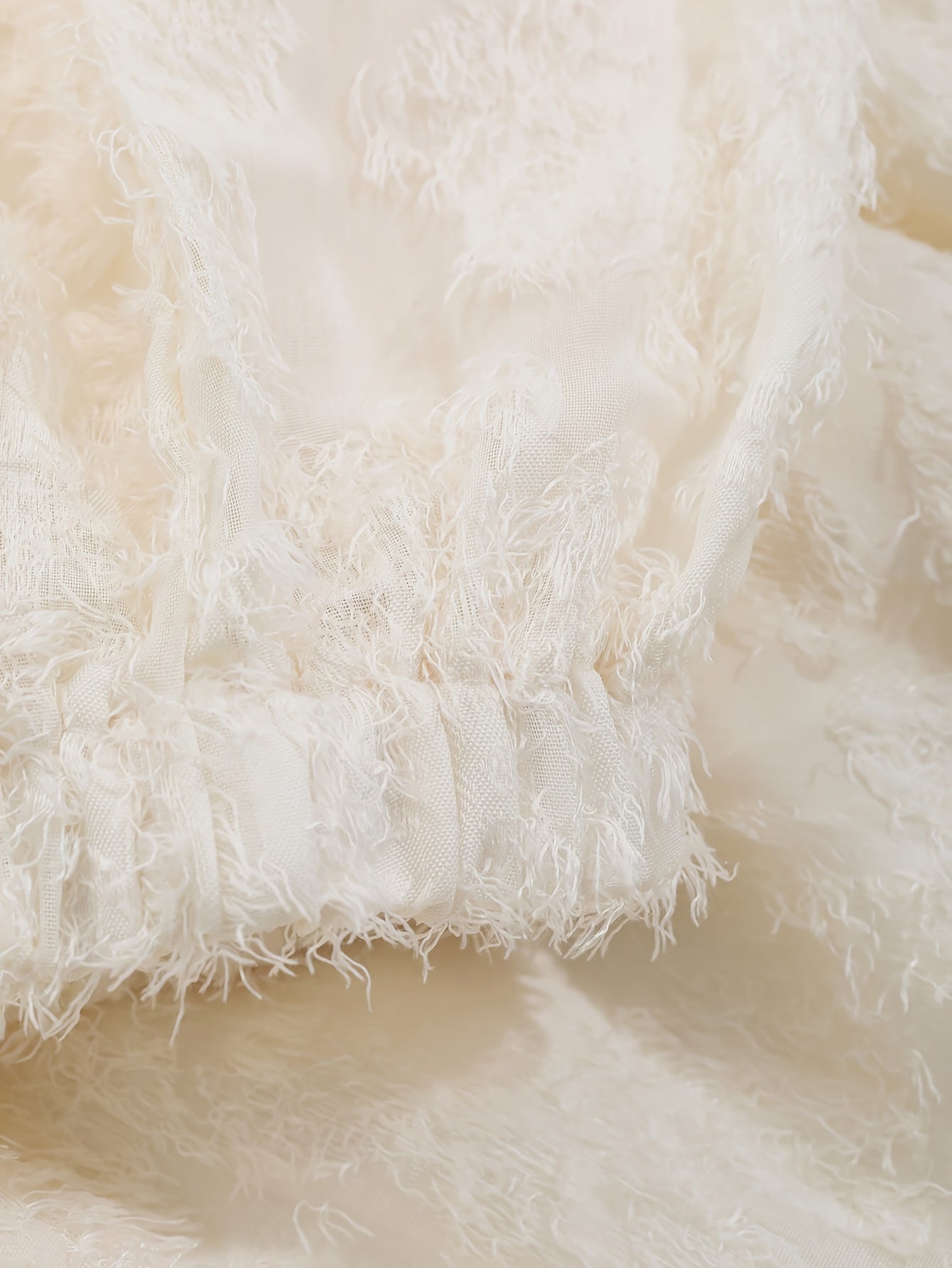 Women's Long Sleeve Blouse with Ruffled Hem in Textured Polyester Fabric