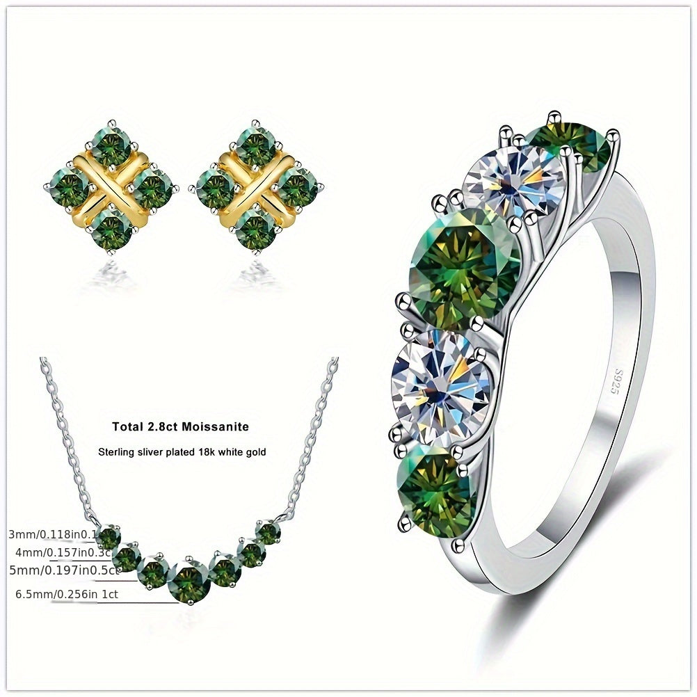 Sterling Silver 4-Piece Jewelry Set with Moissanite Necklace Earrings Ring Gift for Holidays