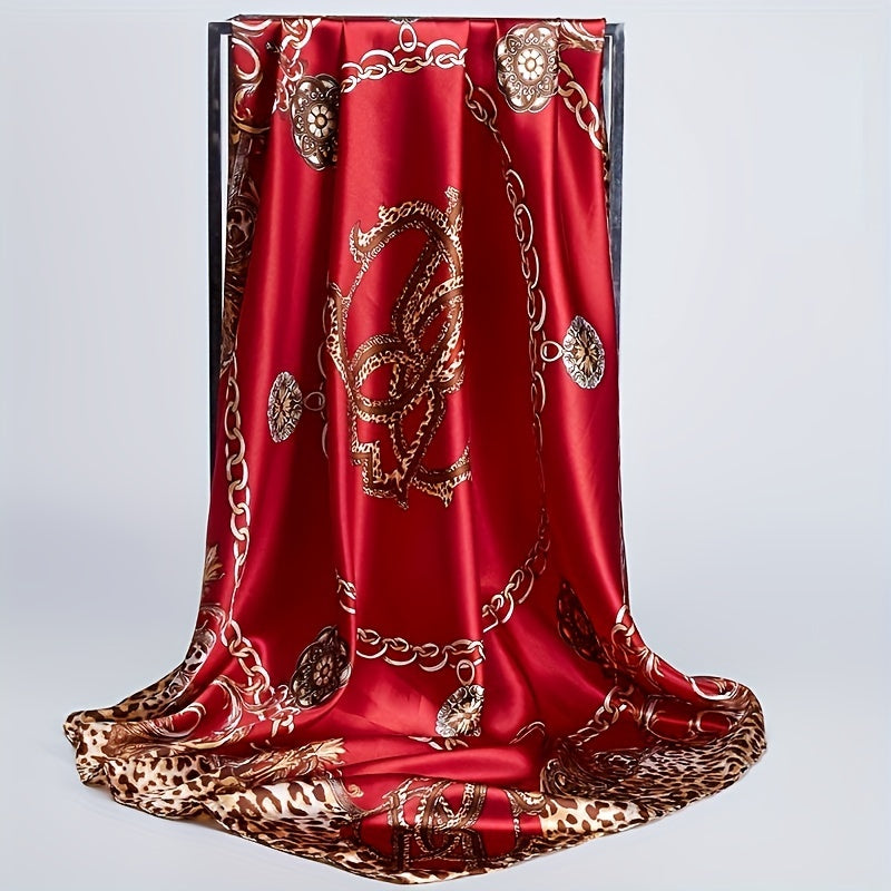 Women's Satin Square Scarf 88.9cm Leopard Chain Print Boho Head Wrap Shawl
