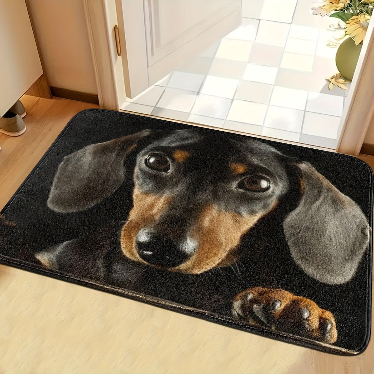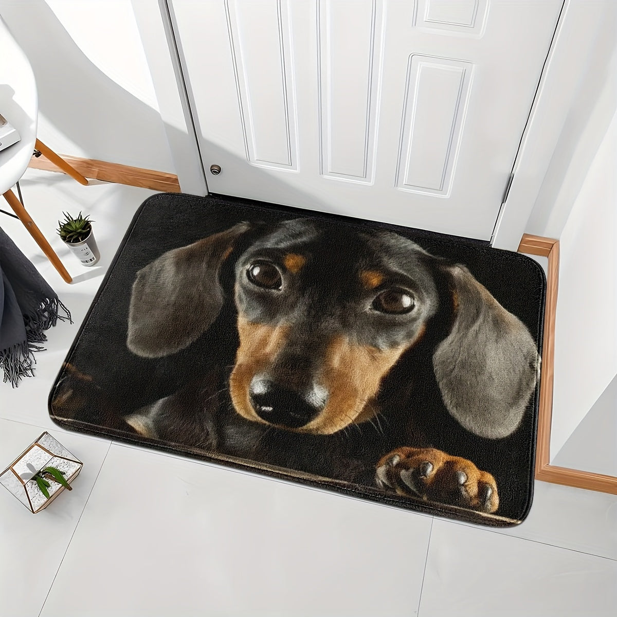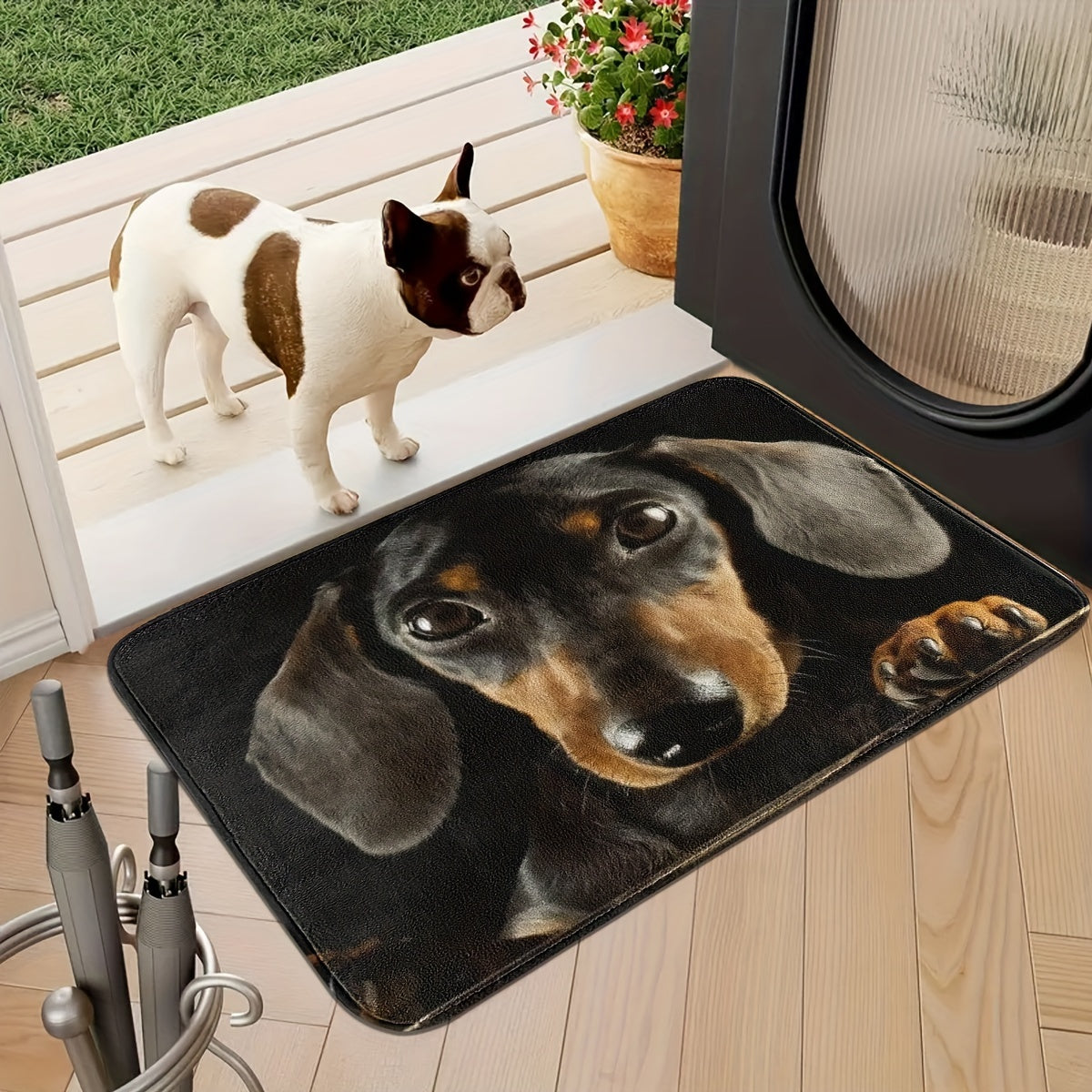 Machine Washable Black Dachshund Door Mat Non-Slip Absorbent Entrance Rug