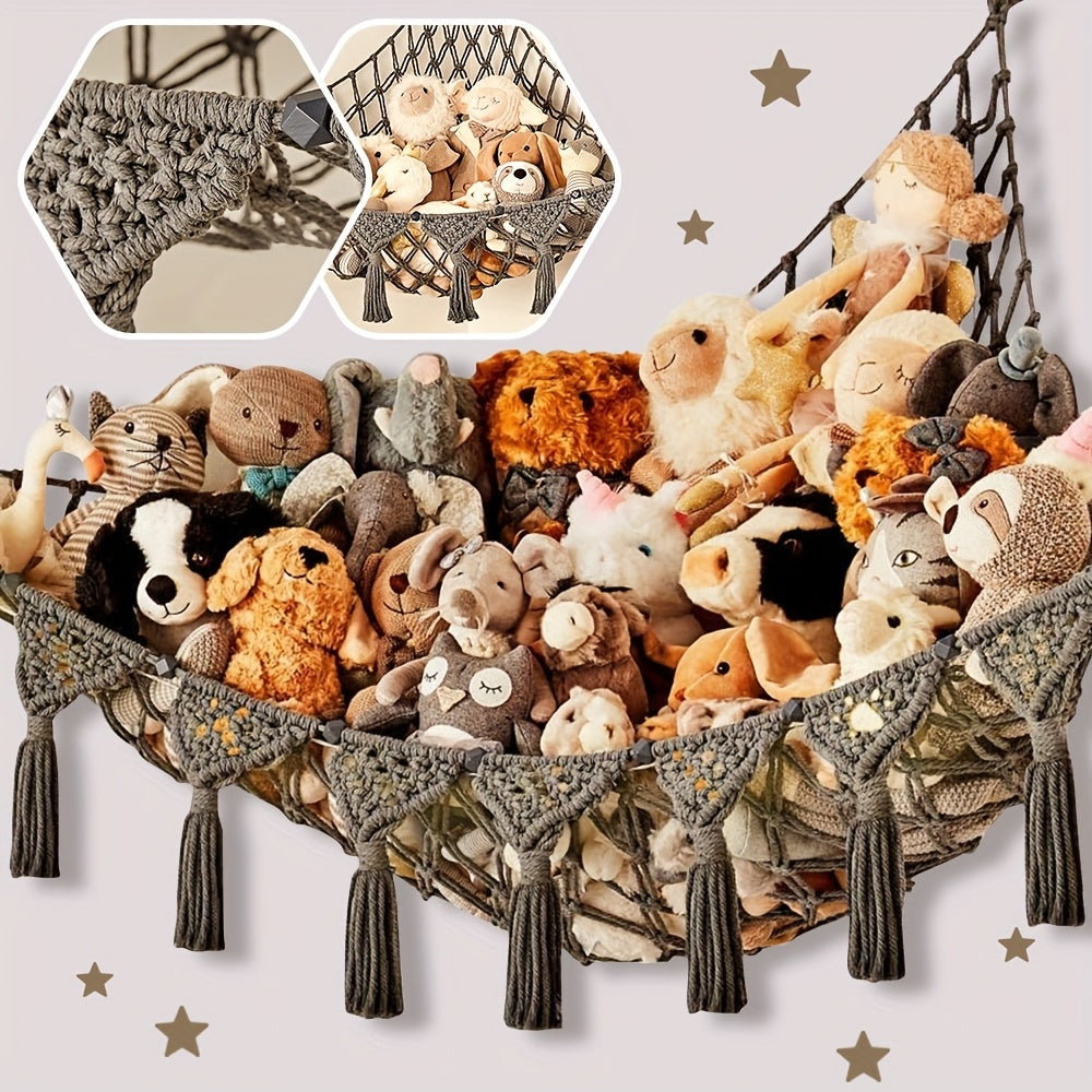 Macrame Stuffed Animal Storage Net for Nursery Decor Kids Toy Organizer