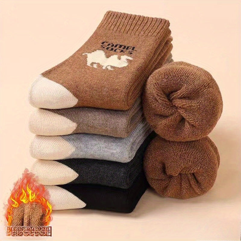 Men's Winter Animal Pattern Socks 5-Pack Thick Knit Polyester Warm Plush Terry