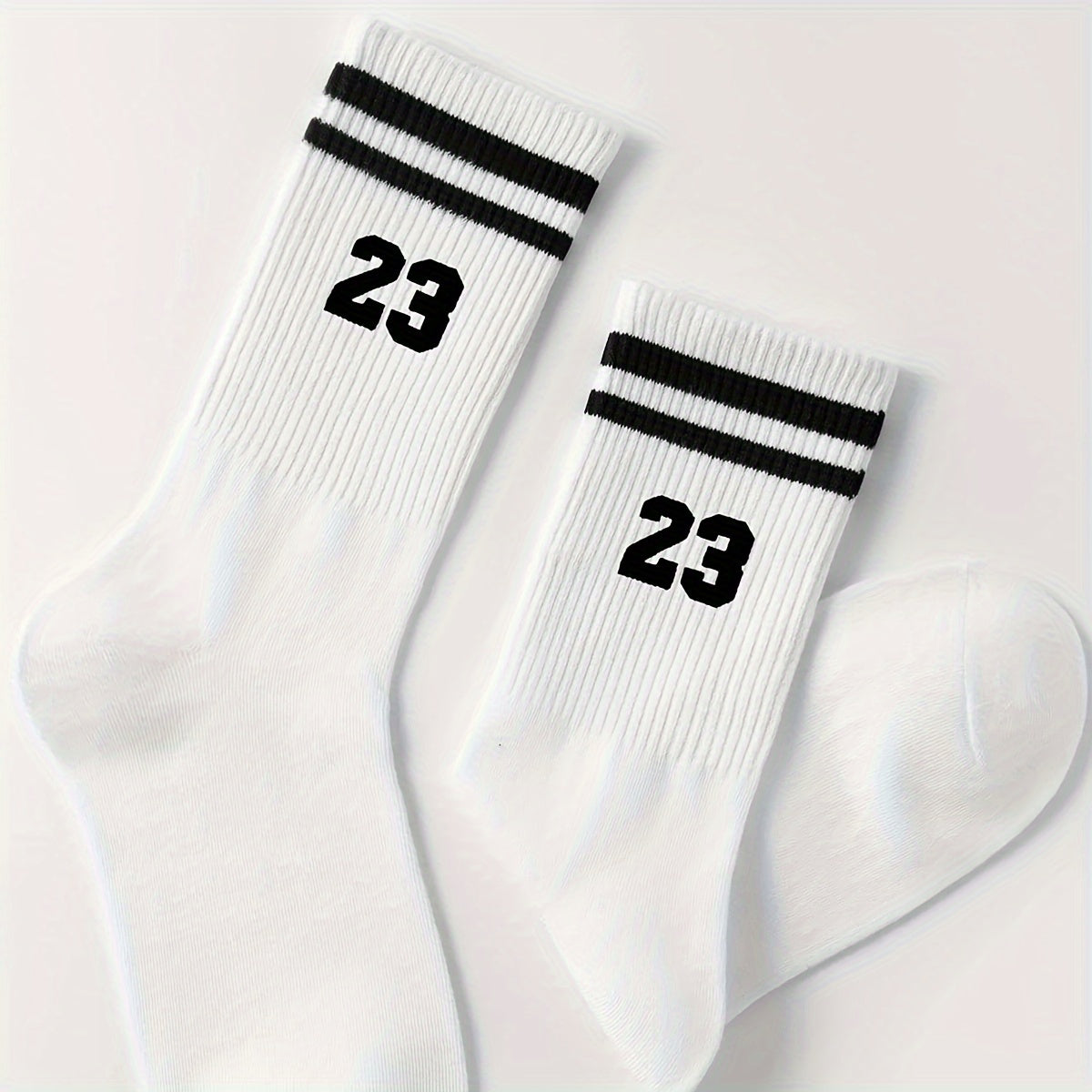 Men's Athletic Mid-Calf Socks Striped Pattern Number 23 Polyester Spandex