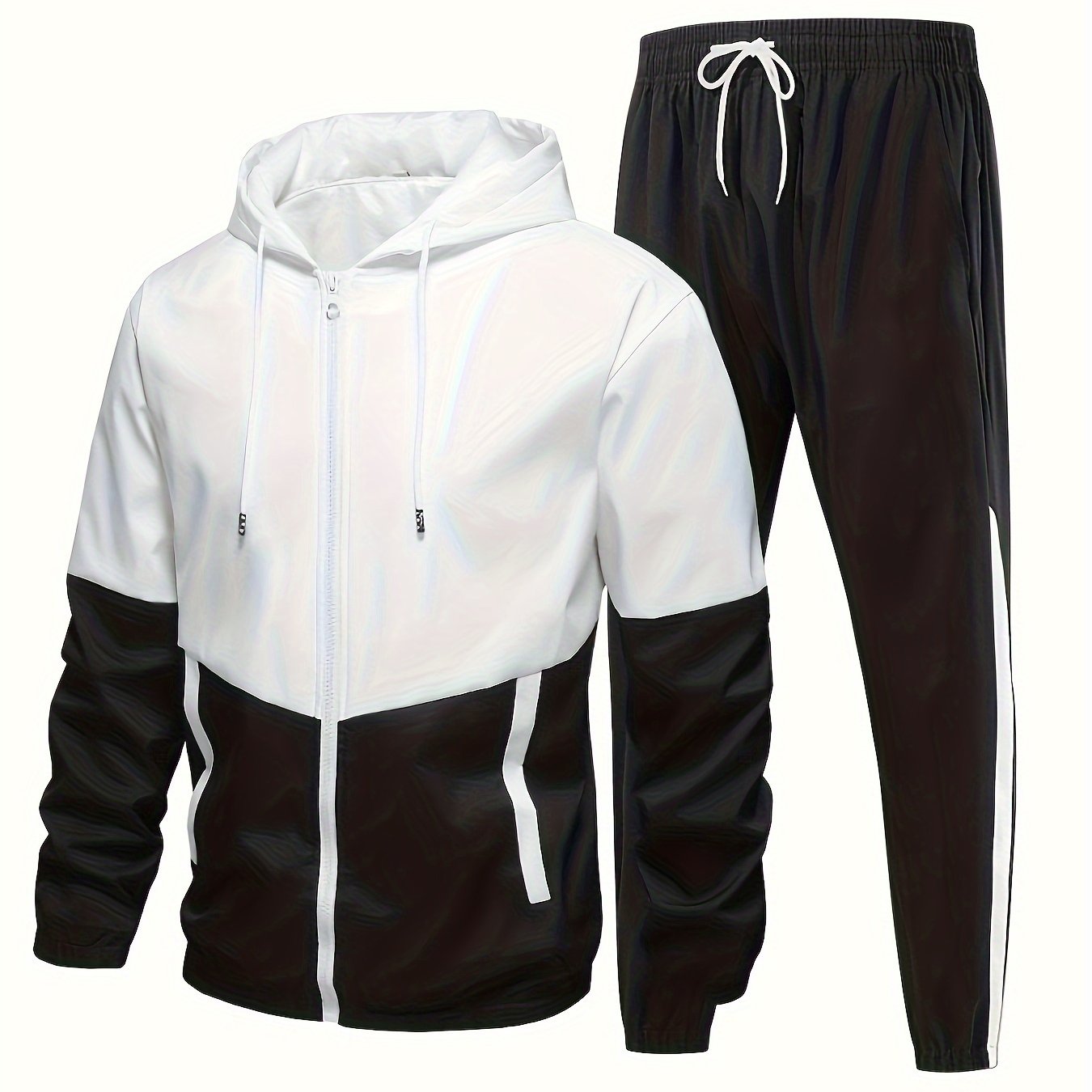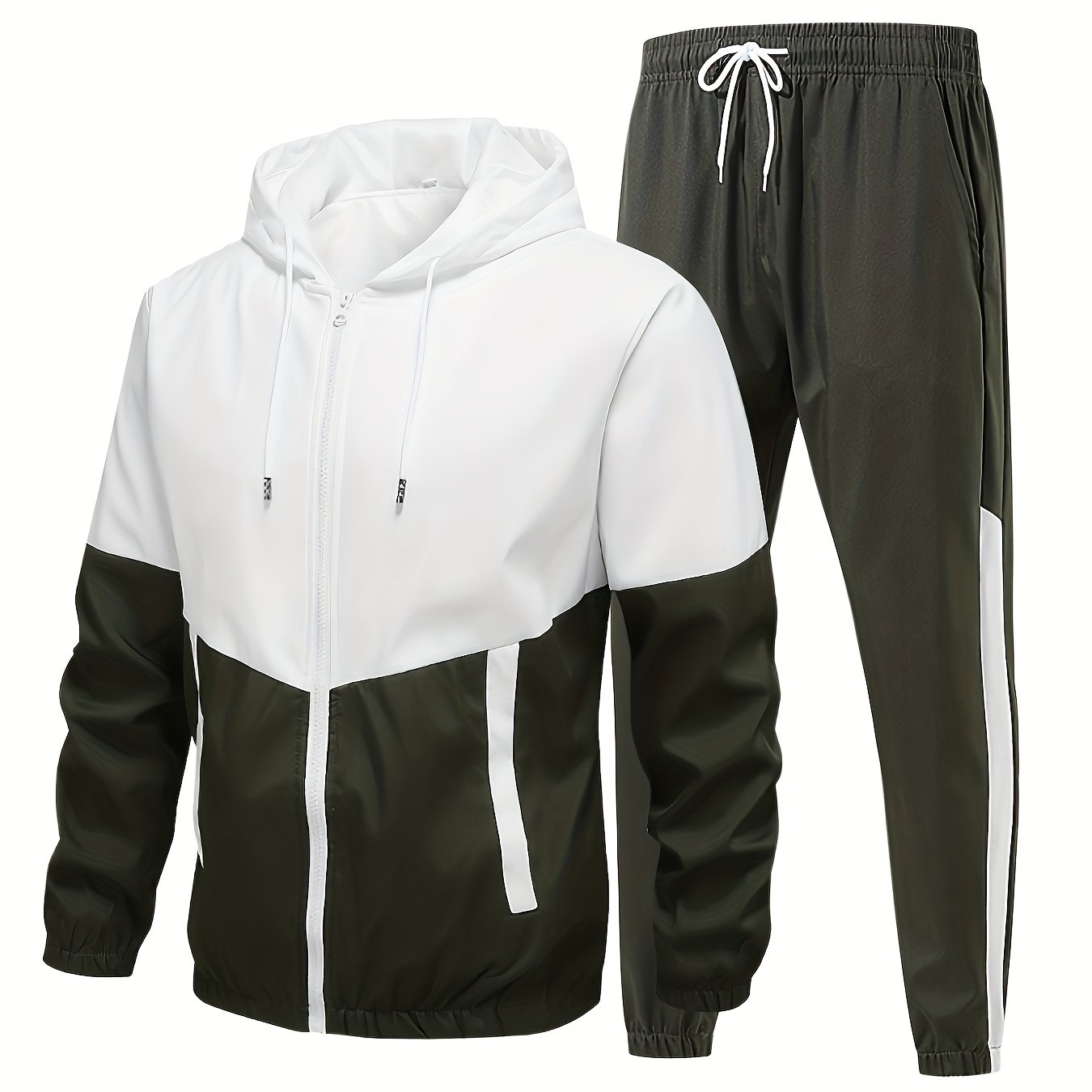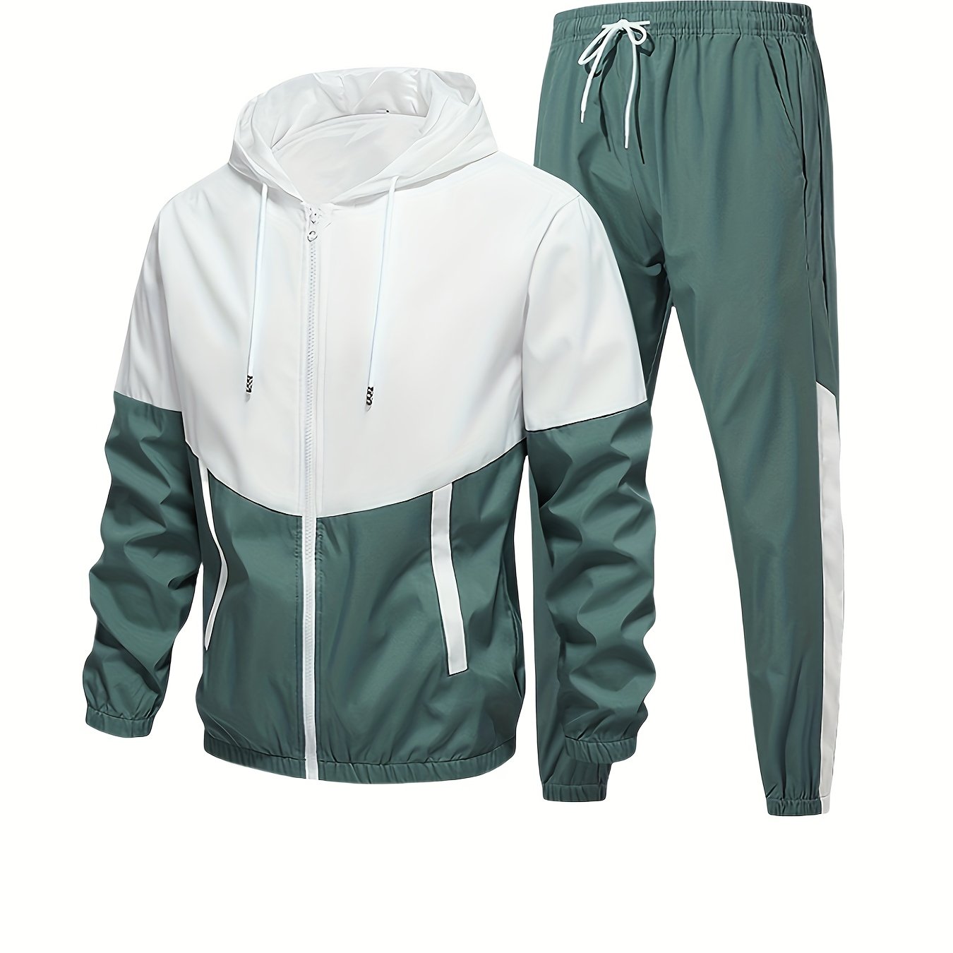 Men's Spring Fall Casual Sports Suit with Hooded Jacket and Pants Set