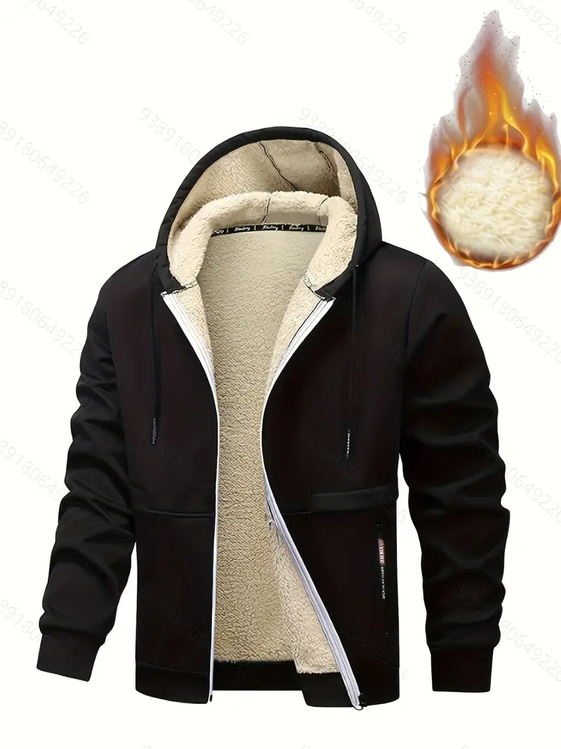 Men's Plus Size Padded Hooded Jacket for Winter Casual Warm Coat with Zipper and Pockets