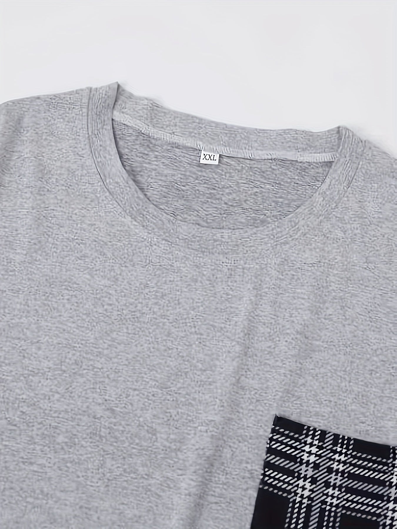 Men's Sleepwear Set Long Sleeve Crew Neck Top and Plaid Pants All-Season Knit Polyester Spandex