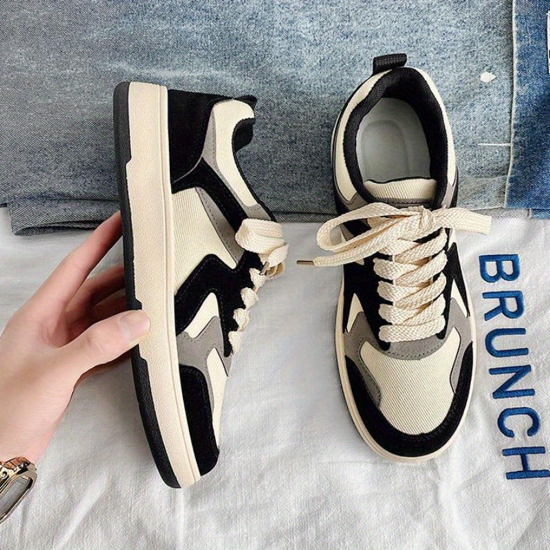Men's Low-Top Canvas Skate Sneakers Rubber Sole Breathable Lining Black White Beige