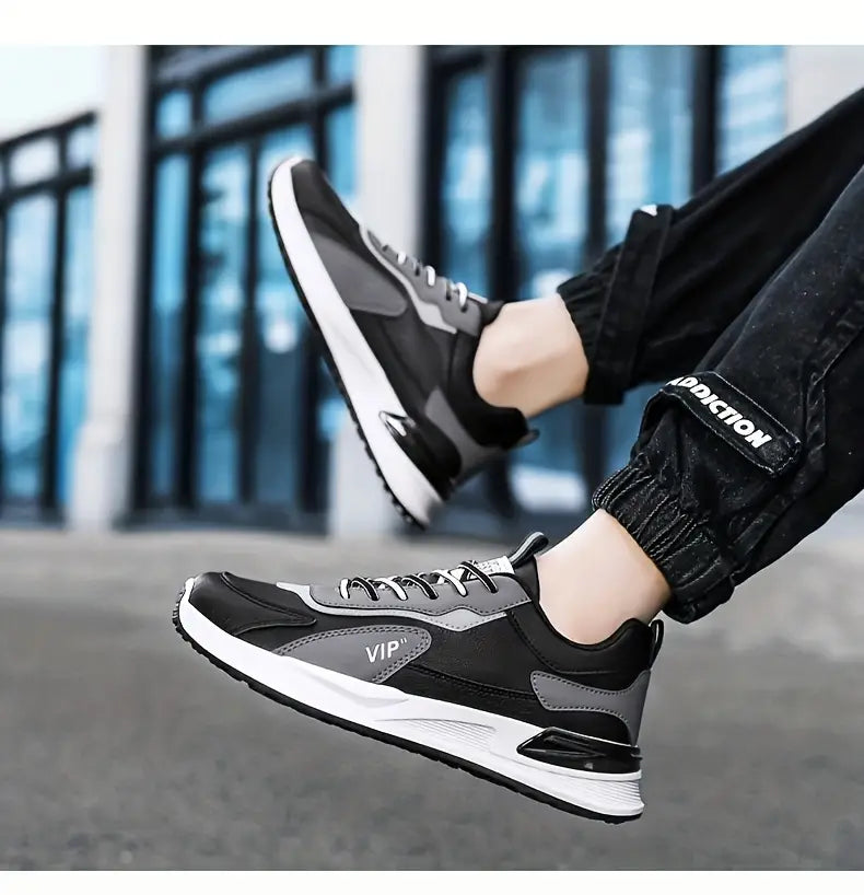 Men's Color Block Lace-Up Non-Slip Running Shoes for Gym Workout Casual Sneakers