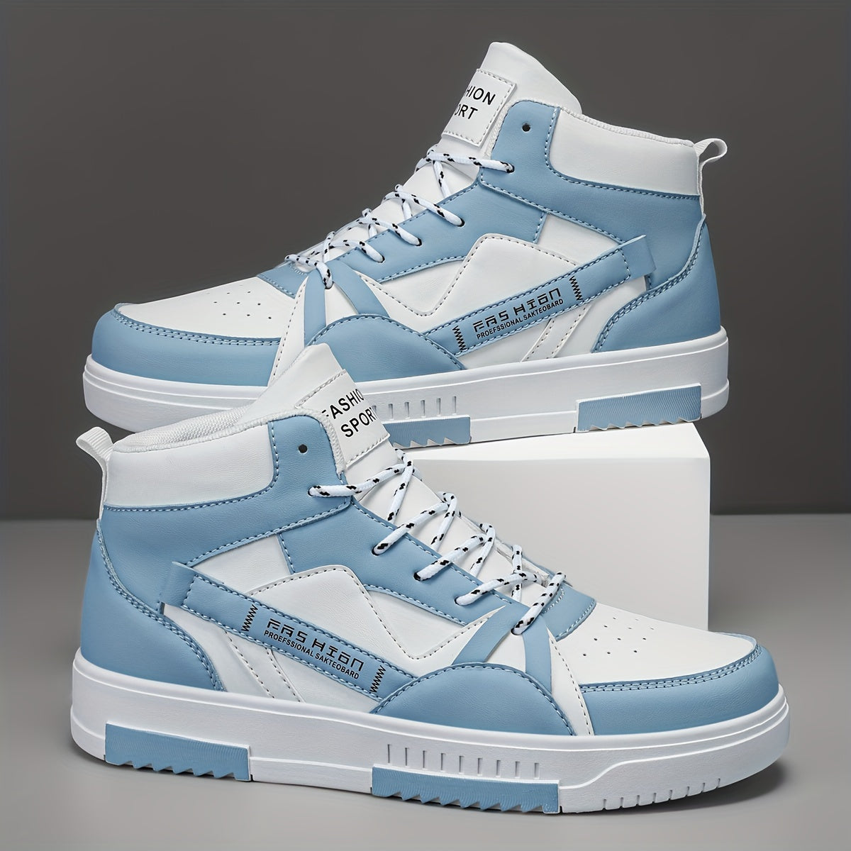 Men's High-Top Skate Sneakers Color Block Thick Sole Casual Lace-Up Outdoor Shoes