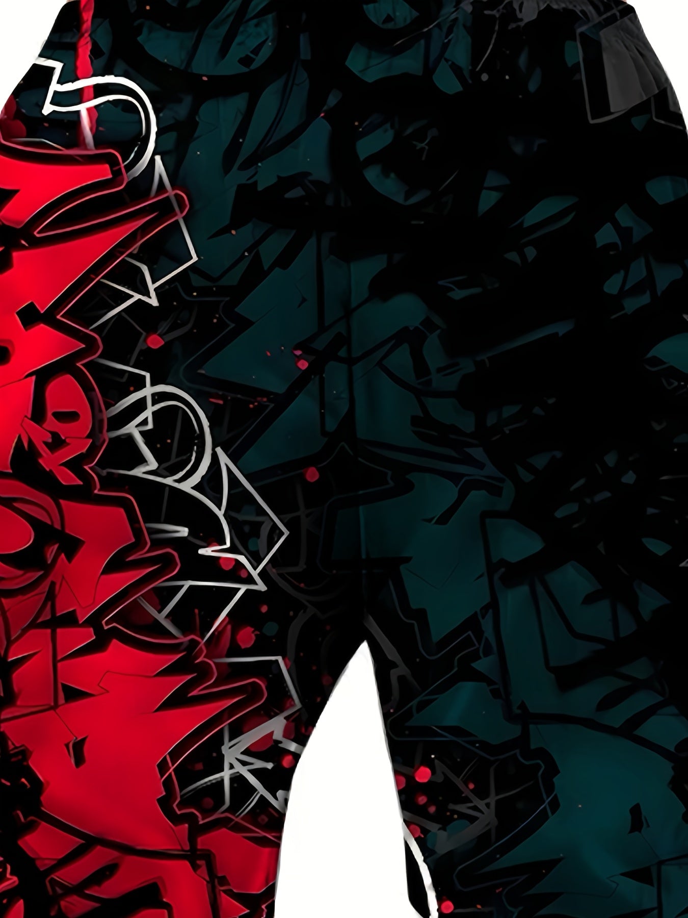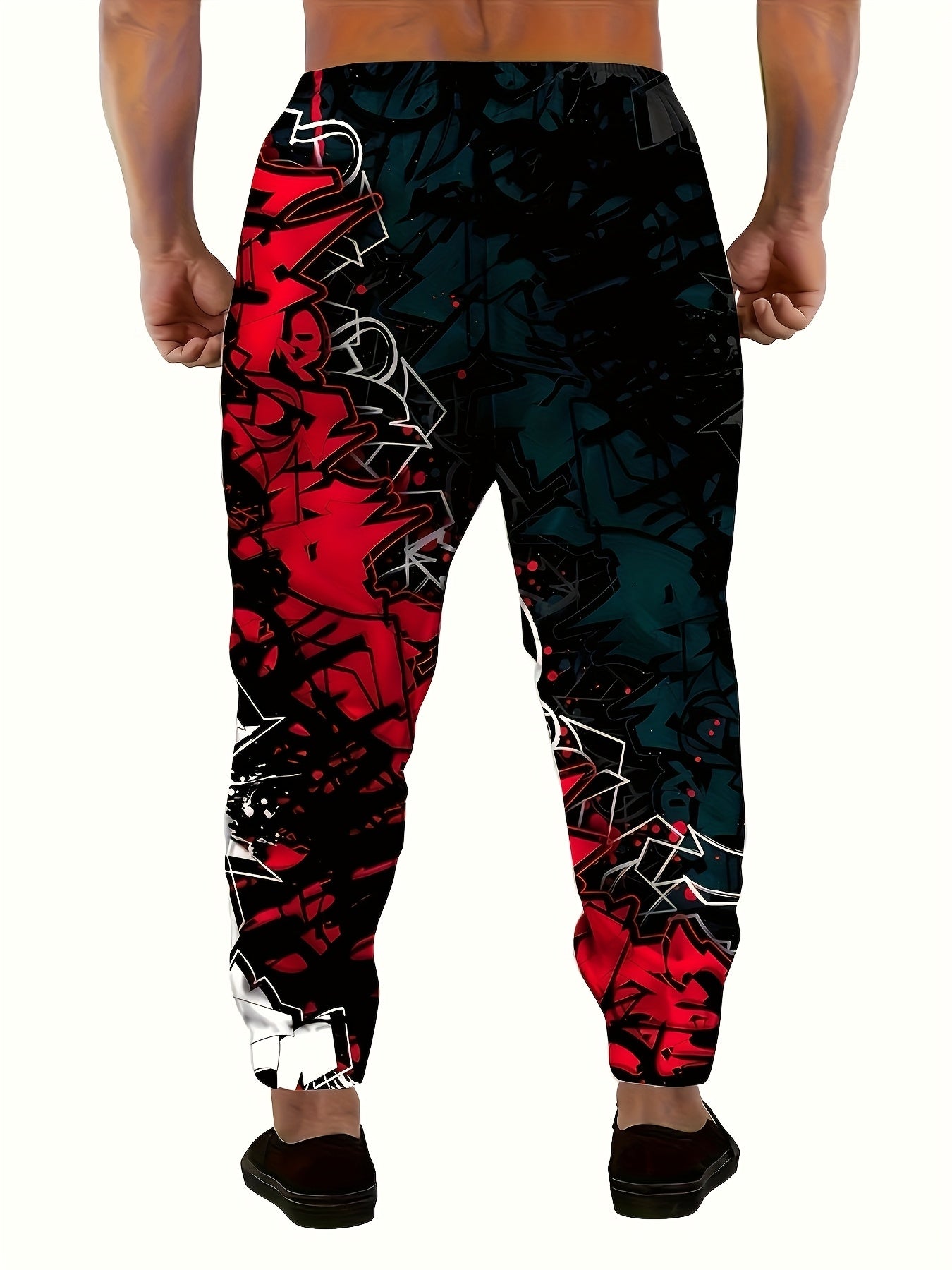 Men's Joggers with 3D Graffiti Print Drawstring Pockets Polyester Sweatpants All Seasons