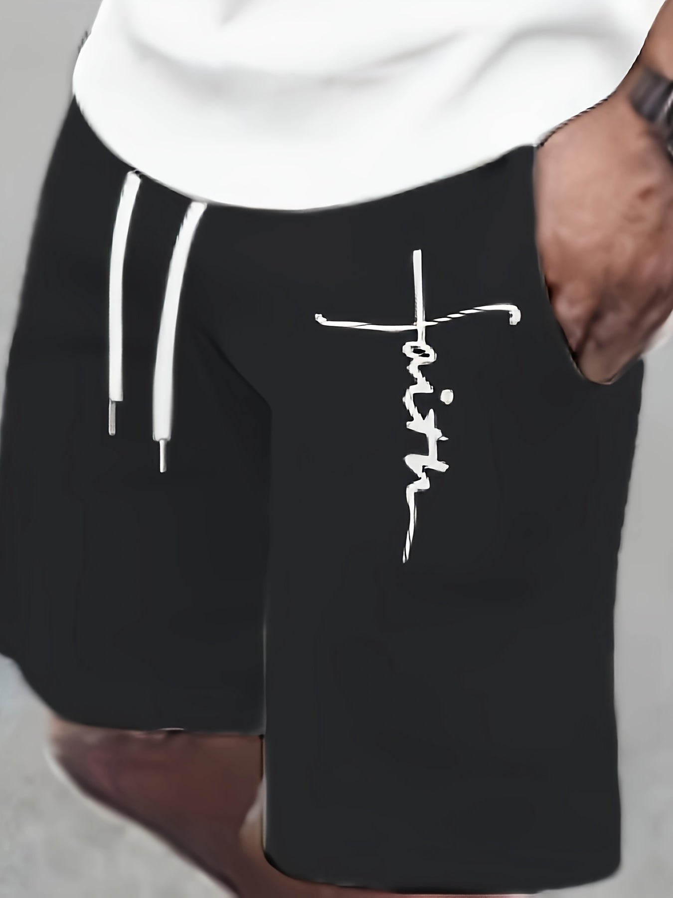 Men's Plus Size Casual Sports Set Polyester Knit with Cartoon Print Crew Neck T-Shirt and Shorts