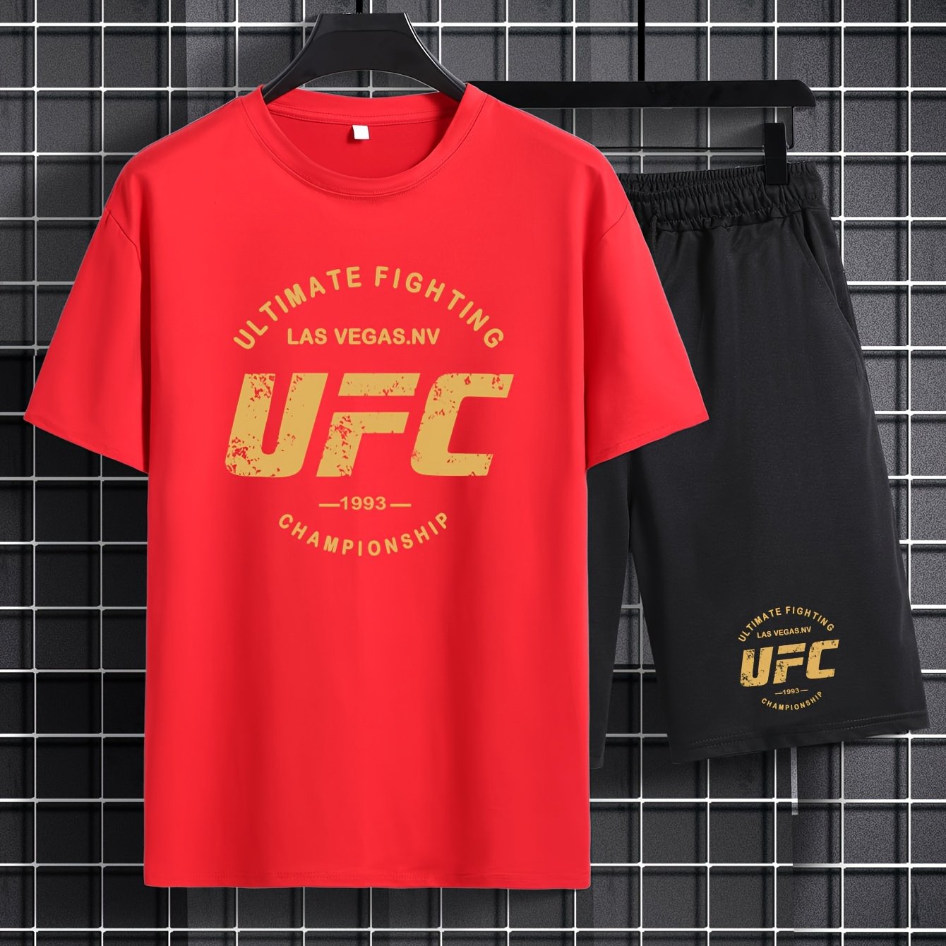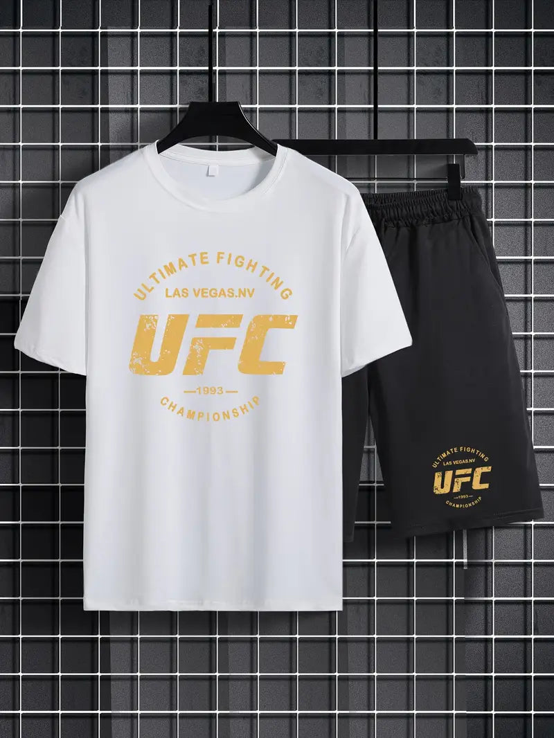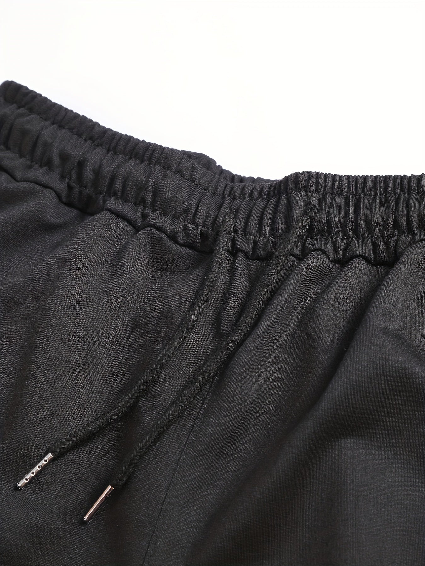 Men's Plus Size Casual Sportswear Set with Printed T‑Shirt and Drawstring Shorts