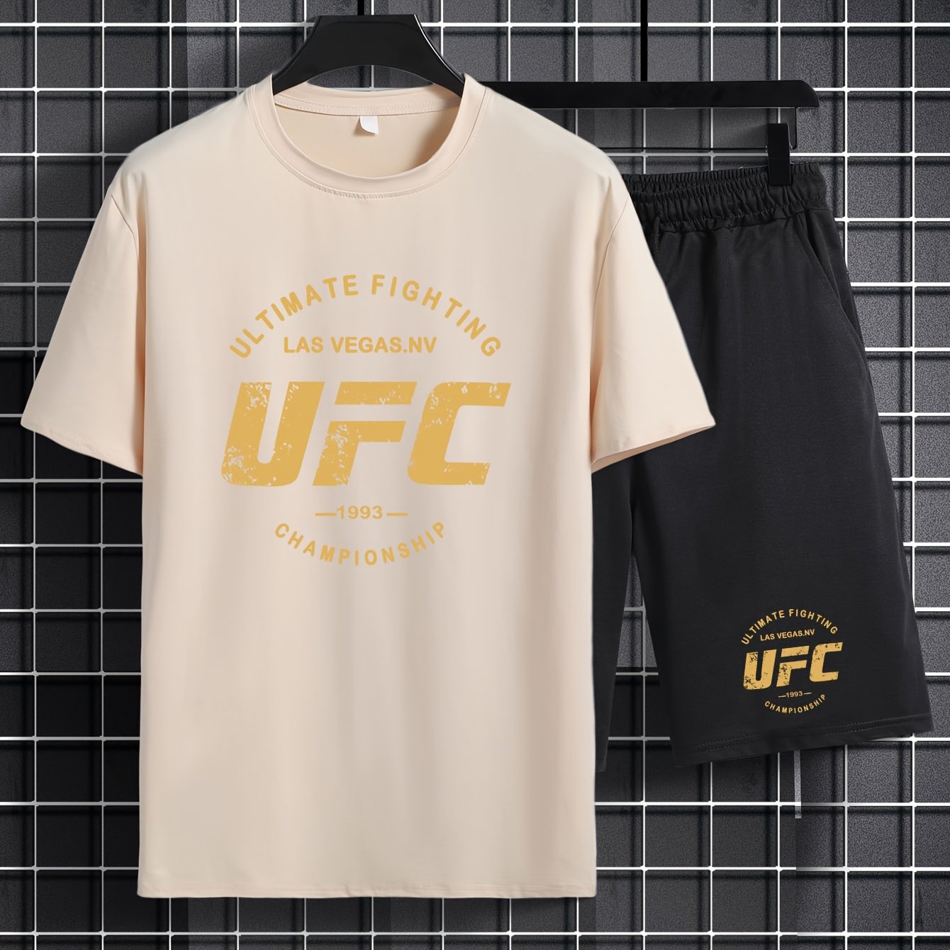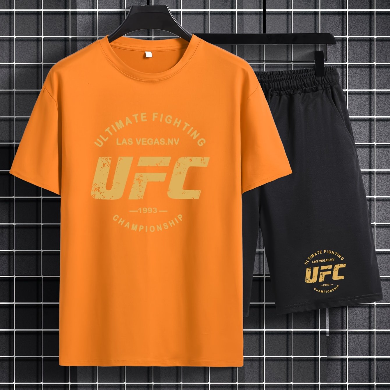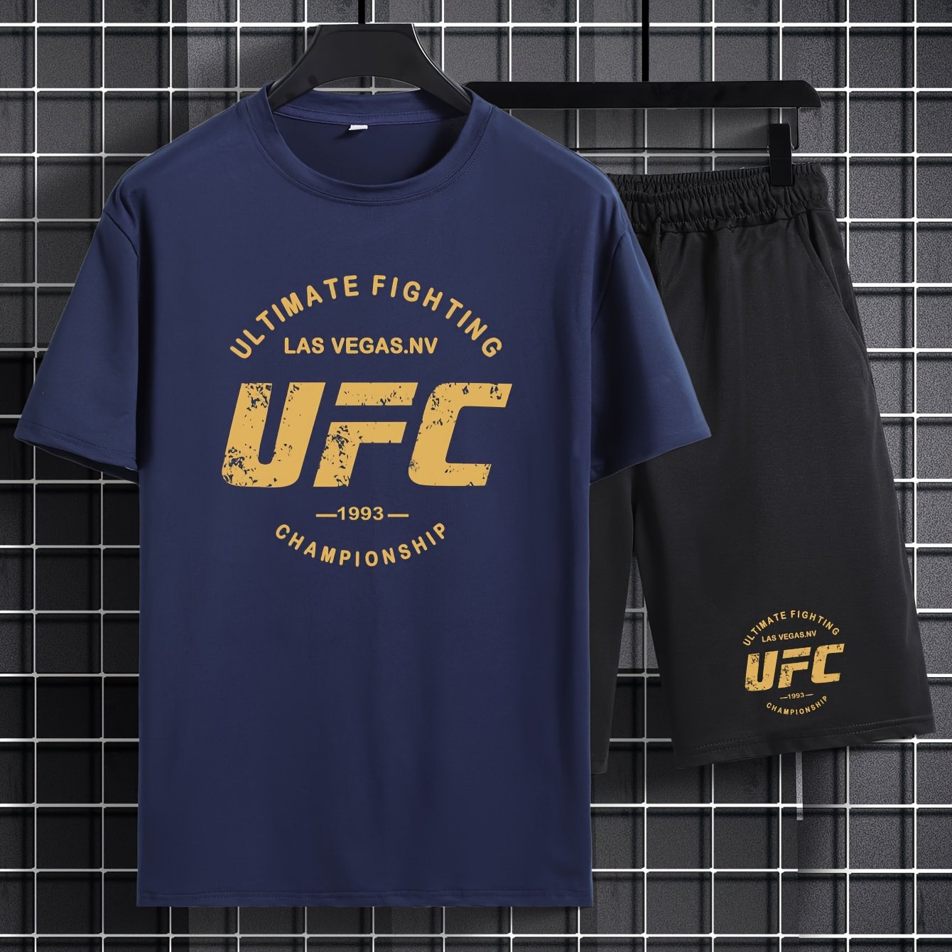 Men's Plus Size Casual Sportswear Set with Printed T‑Shirt and Drawstring Shorts