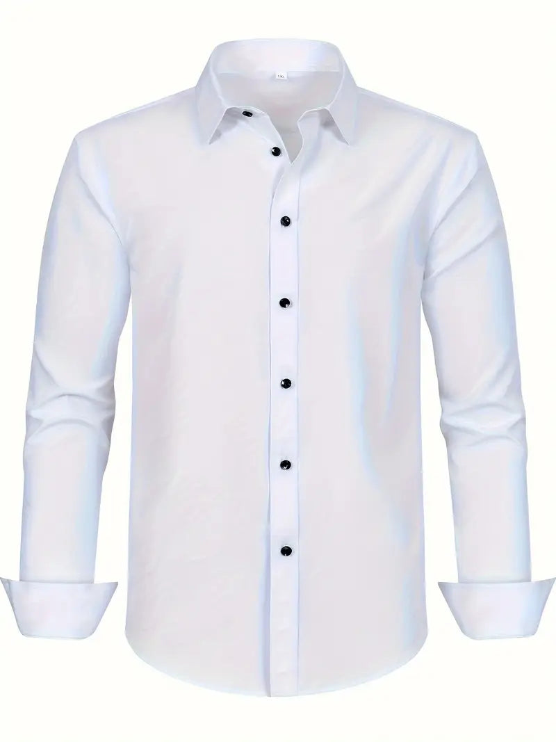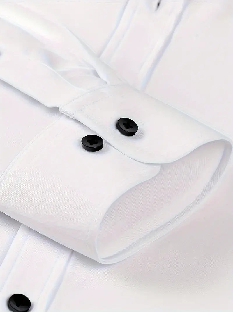 Men's Plus Size Solid Color Dress Shirt with Square Collar Regular Fit All-Season Polyester