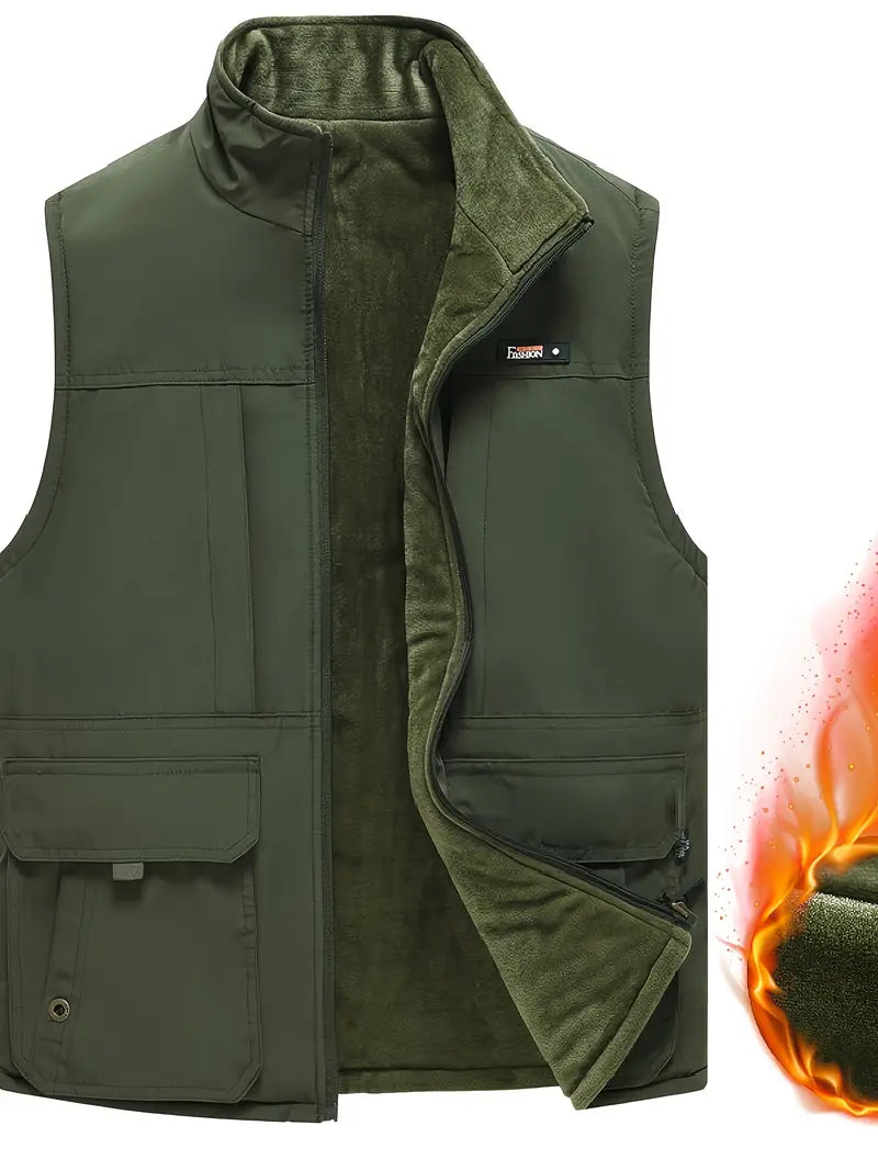 Men's Plus Size Fleece-Lined Vest with Stand Collar for Fall Winter Casual Business