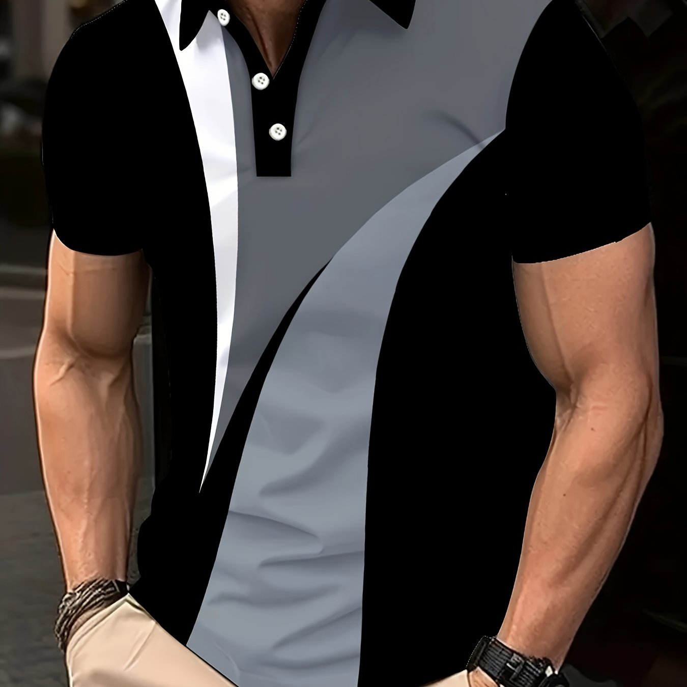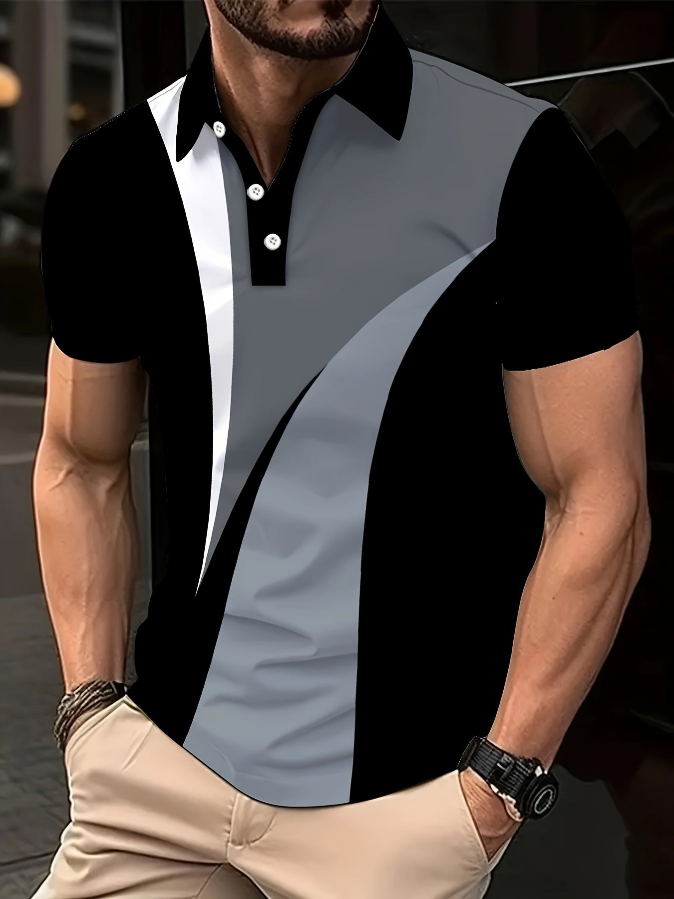 Men's Plus Size Golf Shirt Breathable Polyester Geometric Print Casual Short Sleeve