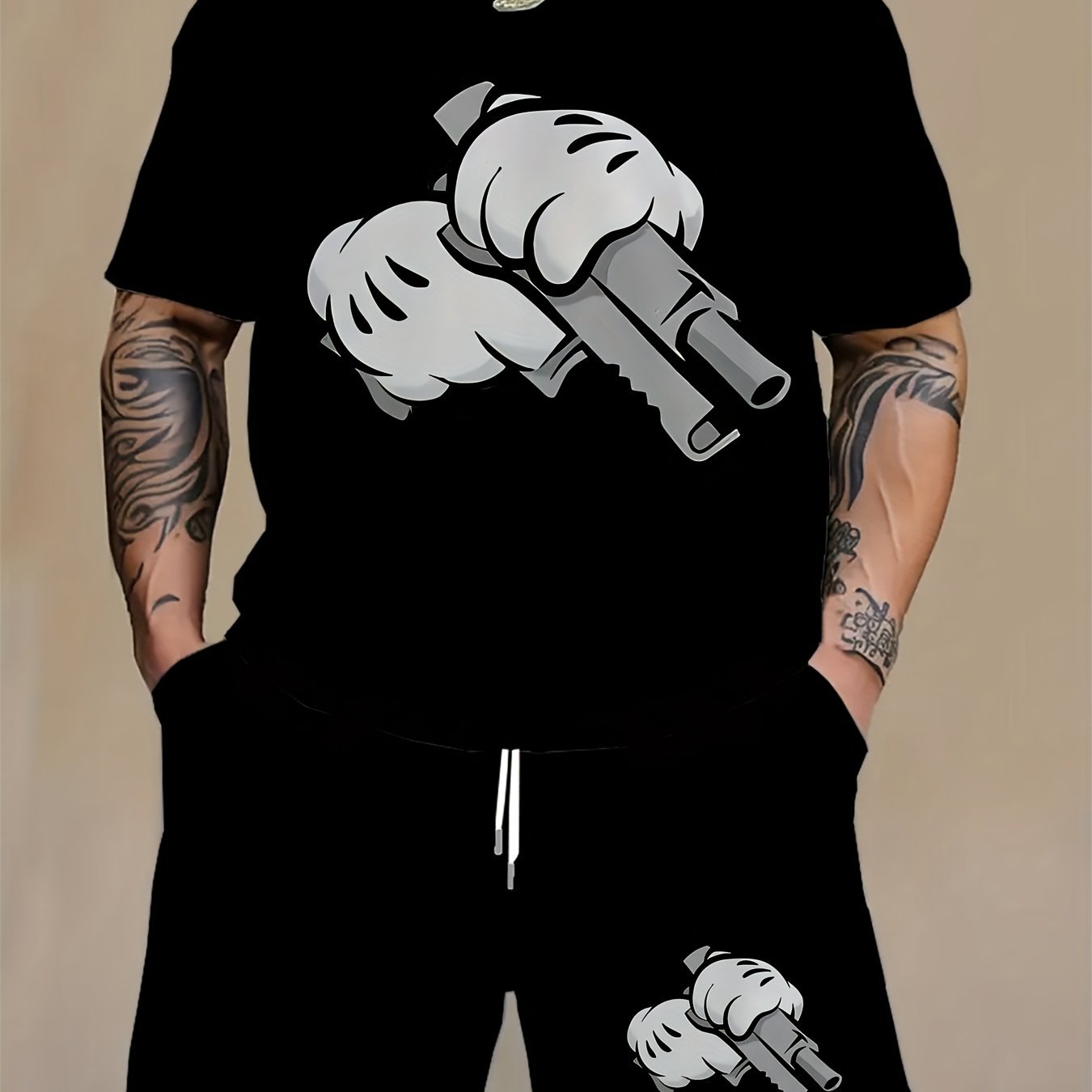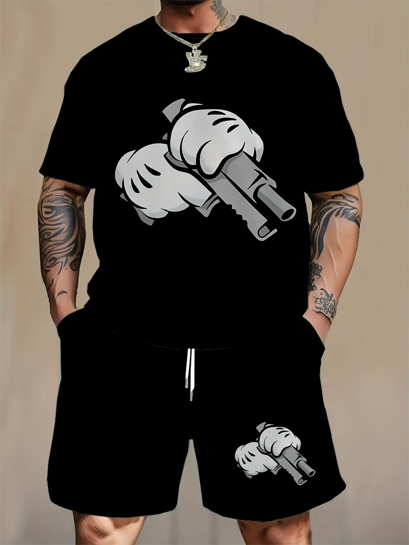 Men's Plus Size Graphic Print T-Shirt and Shorts Set for Summer Outdoor Sports