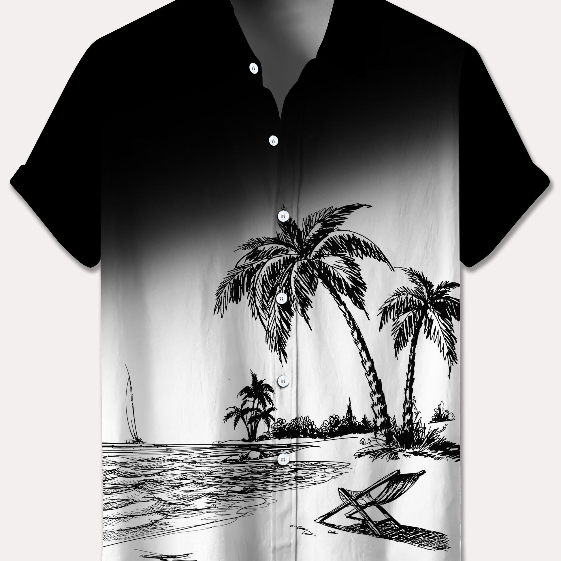 Men's Plus Size Hawaiian Shirt Tropical Beach Scene Lightweight Polyester Casual Button-Up