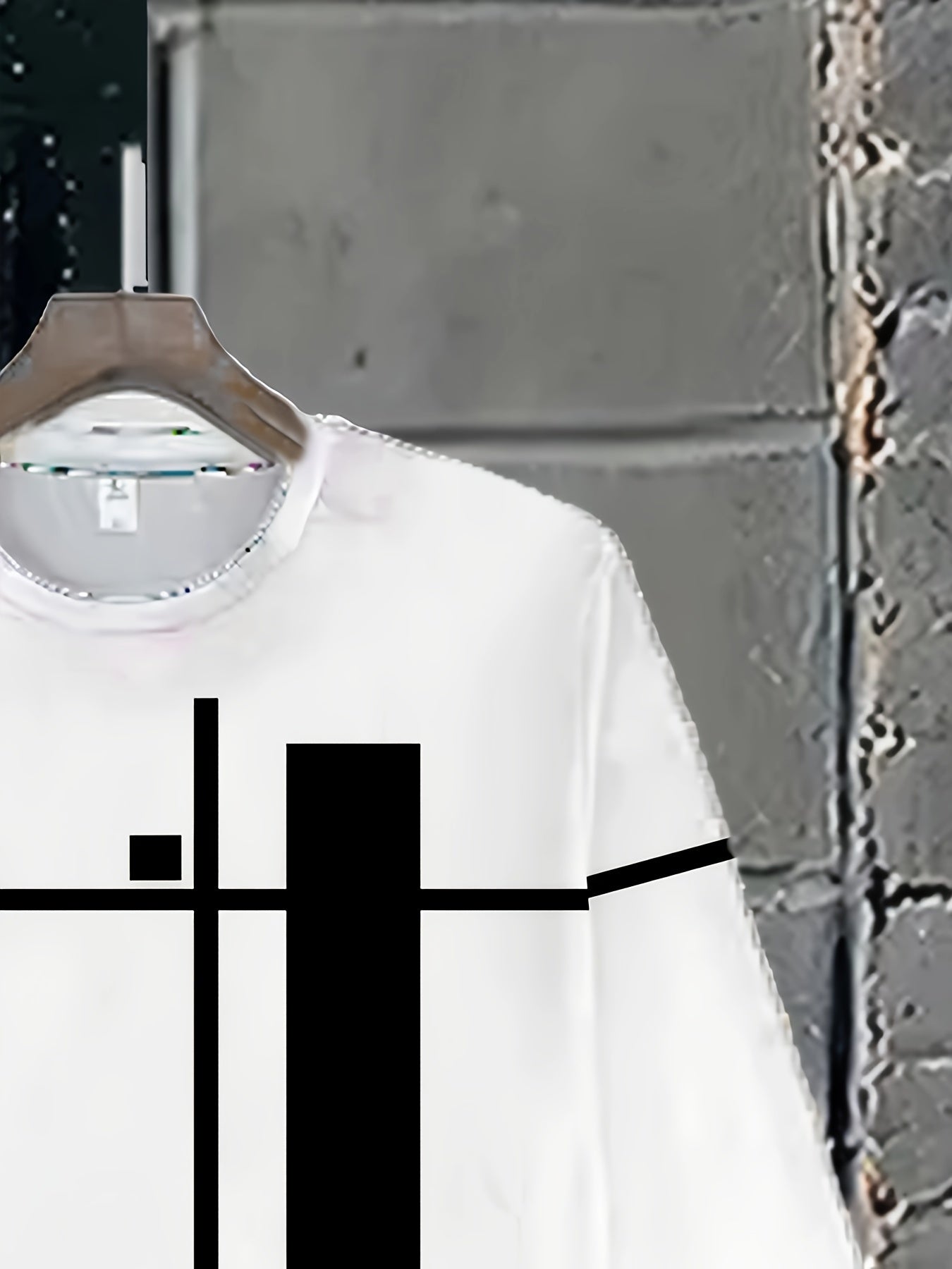 Men's Plus Size Sportswear Set with Geometric Print Crew Neck Long Sleeve T-Shirt and Pants Breathable Polyester Spandex Spring Fall