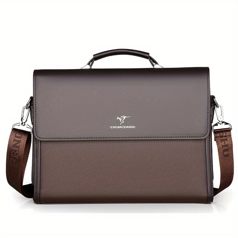 Men's PU Leather Briefcase with Large Capacity and Multiple Compartments in Deep Brown or Black
