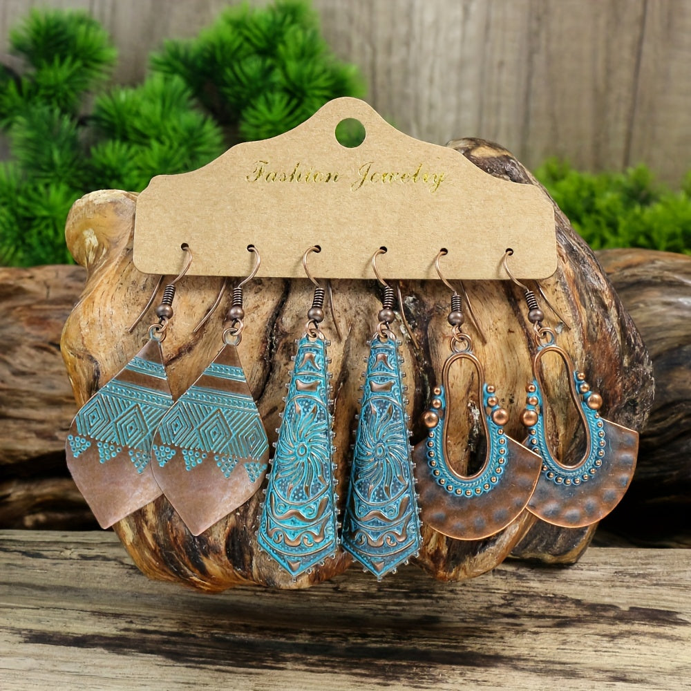 Men's Retro Distressed Geometric Round Dangle Earrings Set of 12 Holiday Party Jewelry
