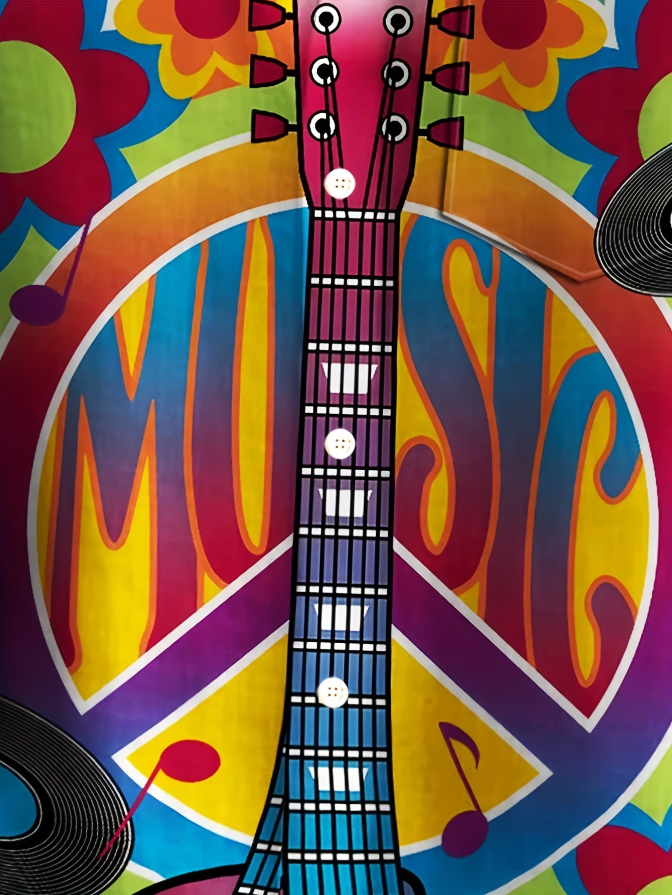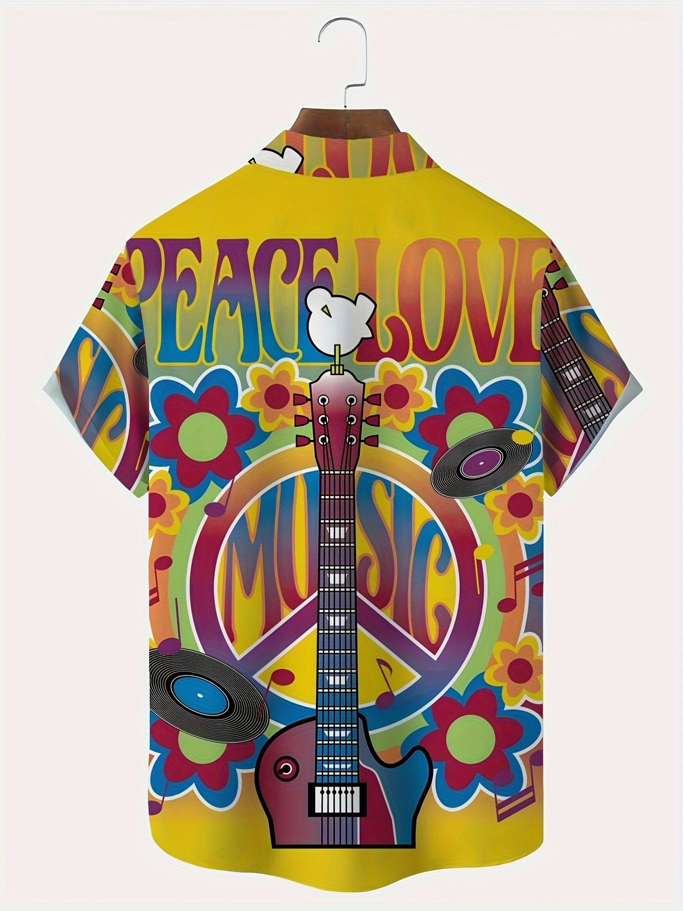 Men's Plus Size Retro Musical Pattern 3D Print Short Sleeve Shirt