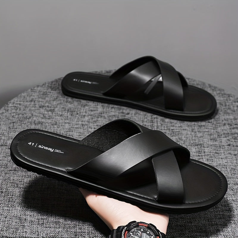 Men's Solid Color Open Toe PVC Slippers for Outdoor Walking and Beach