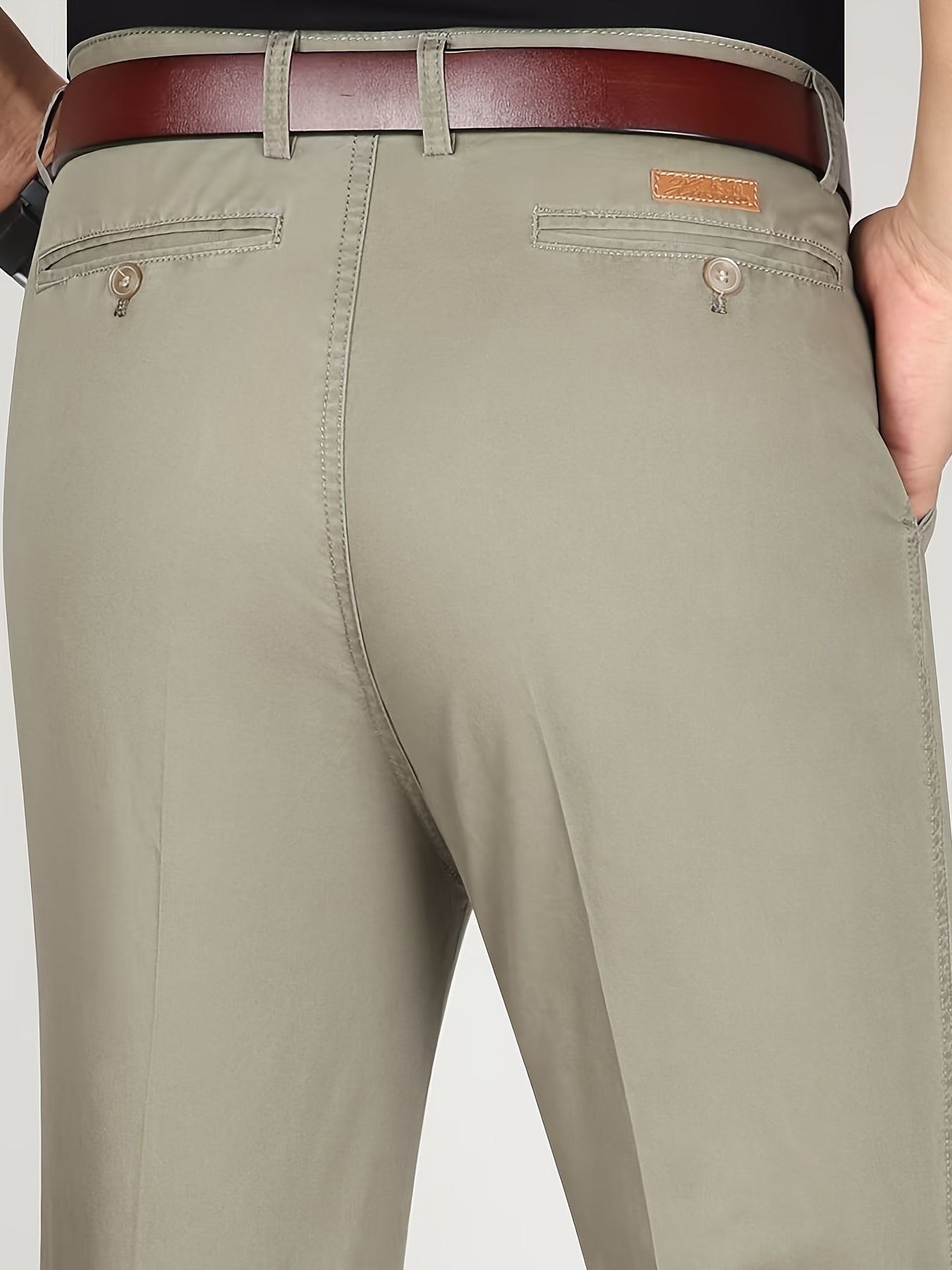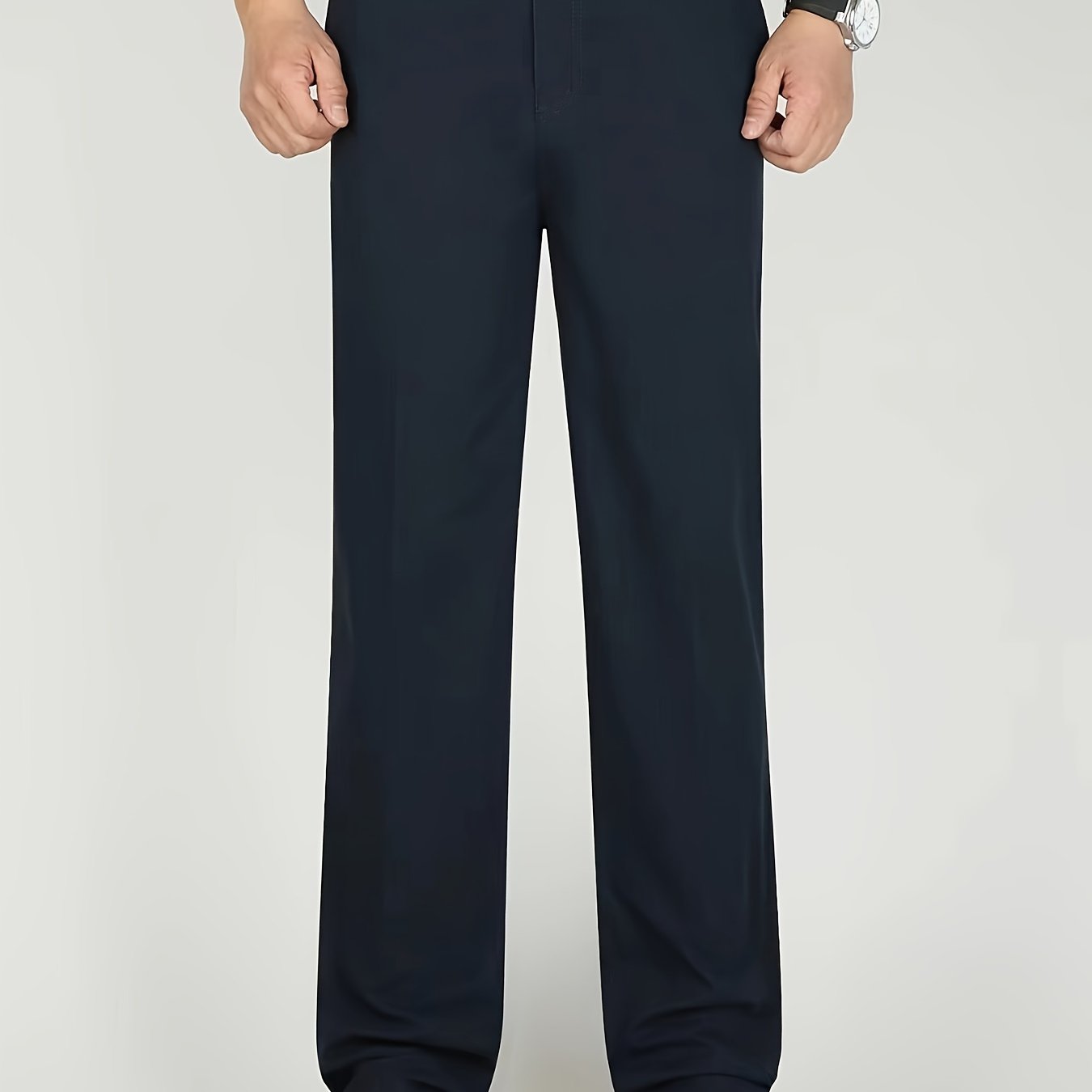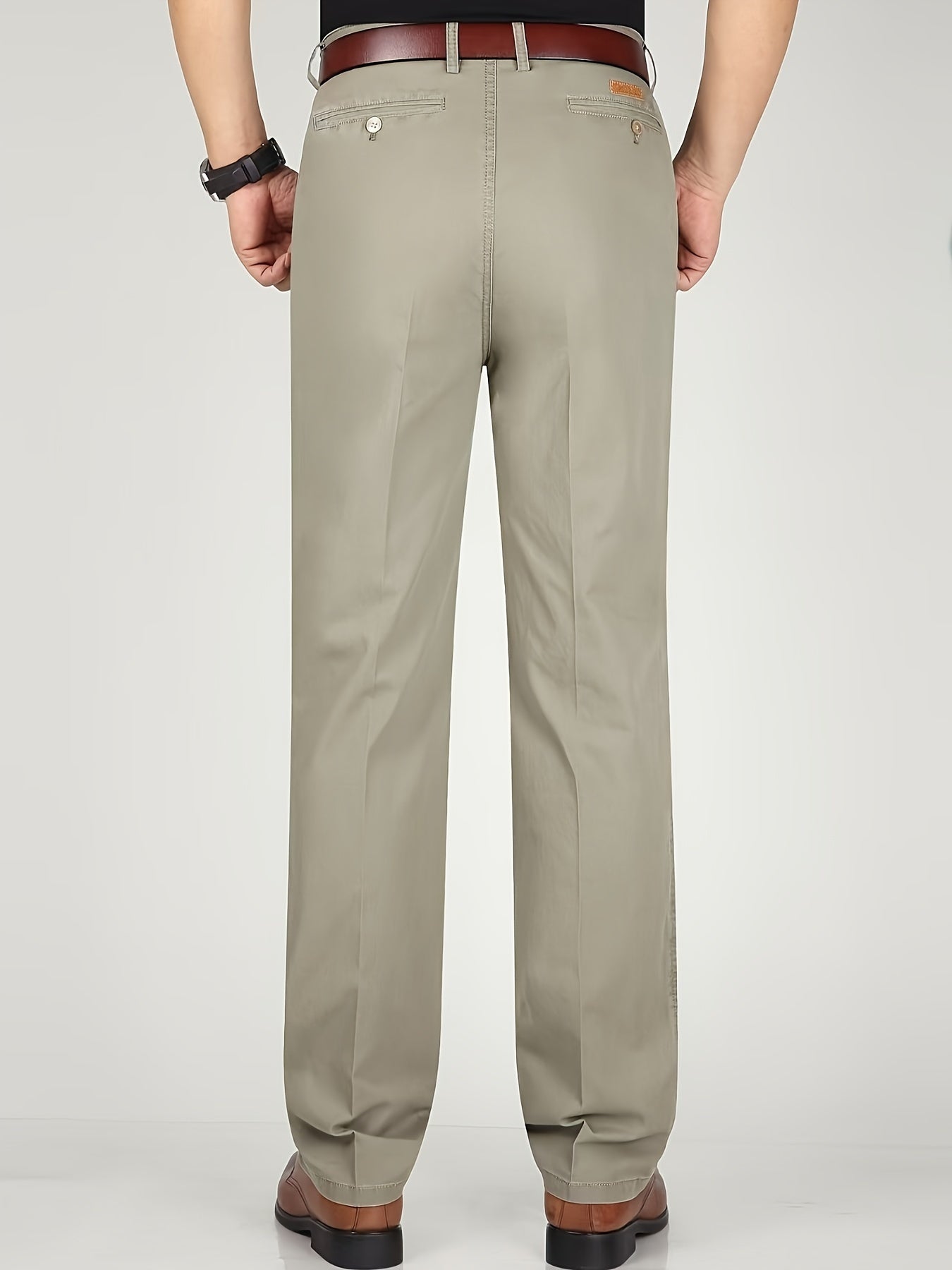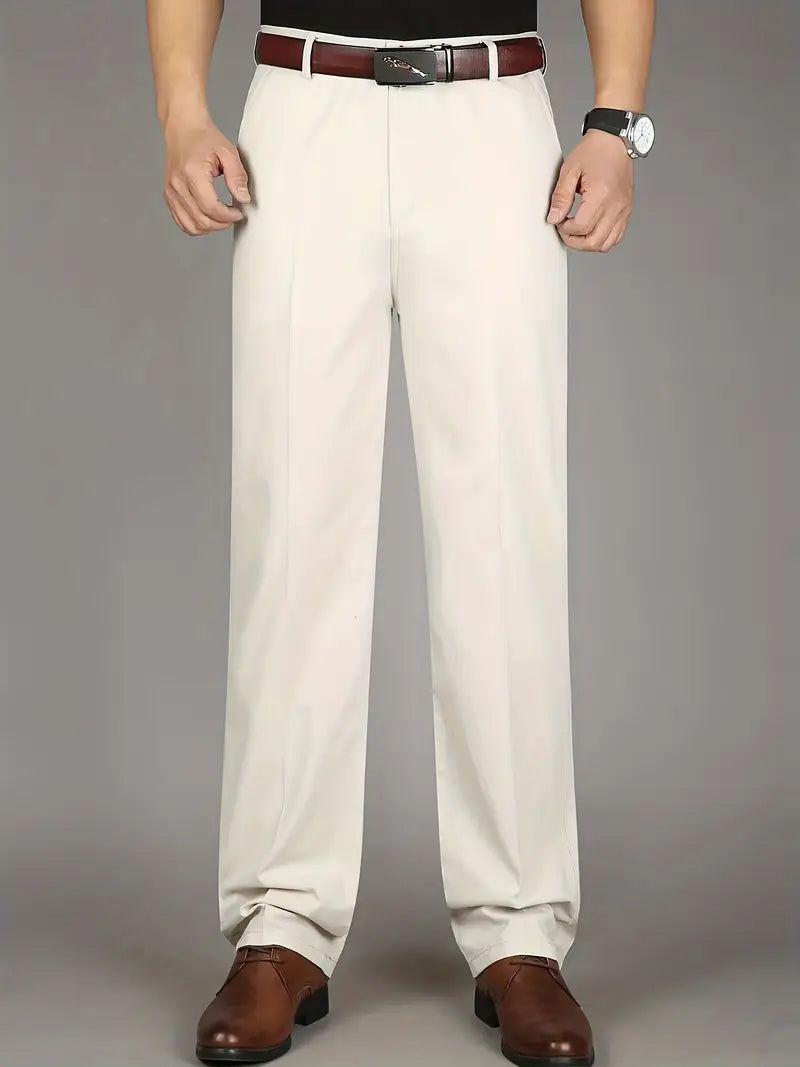 Men's Cotton Polyester Straight Leg Business Slacks Summer Casual High Waist