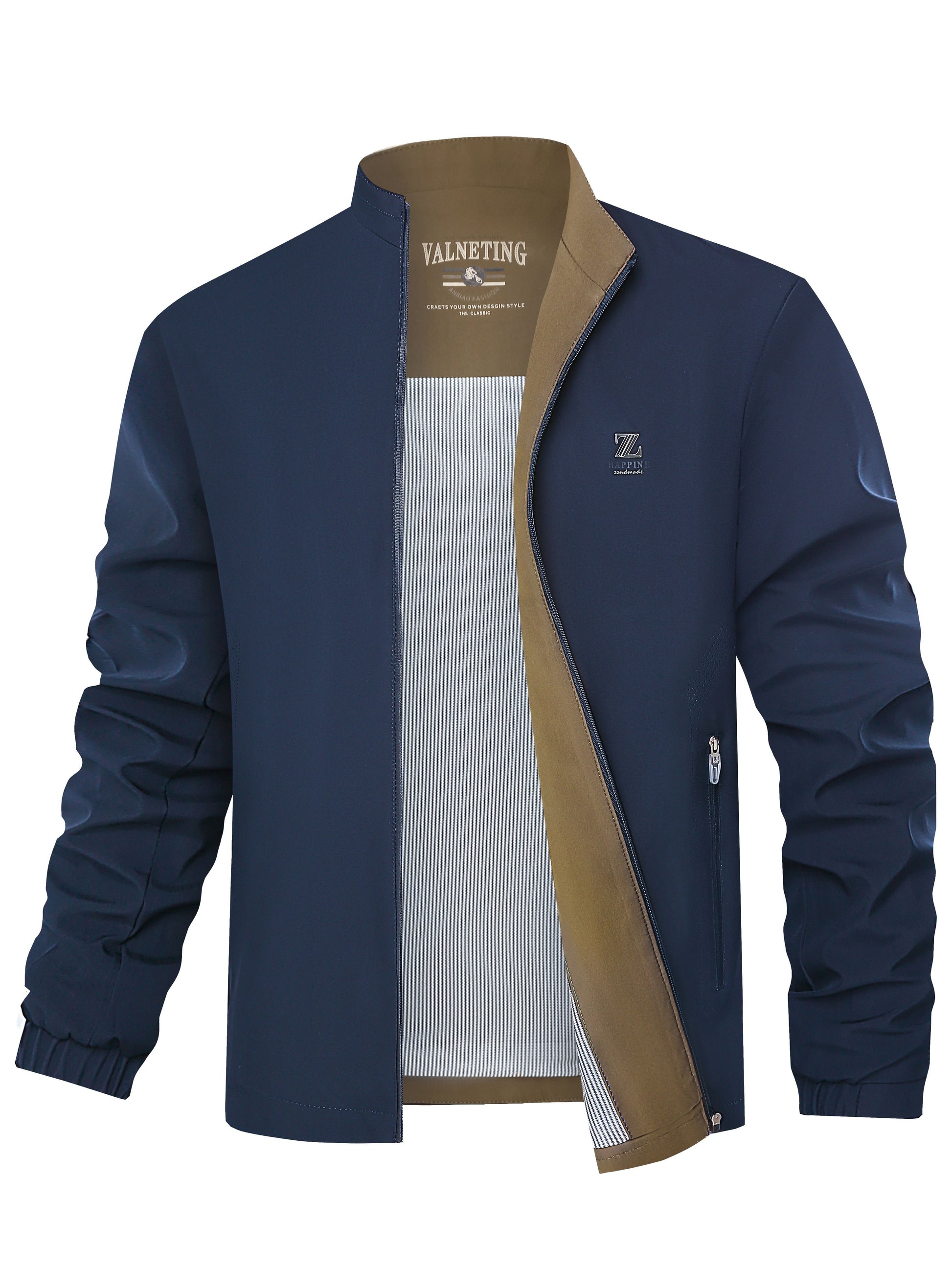Men's Solid Color Polyester Woven Stand Collar Jacket for Spring Fall Regular Fit