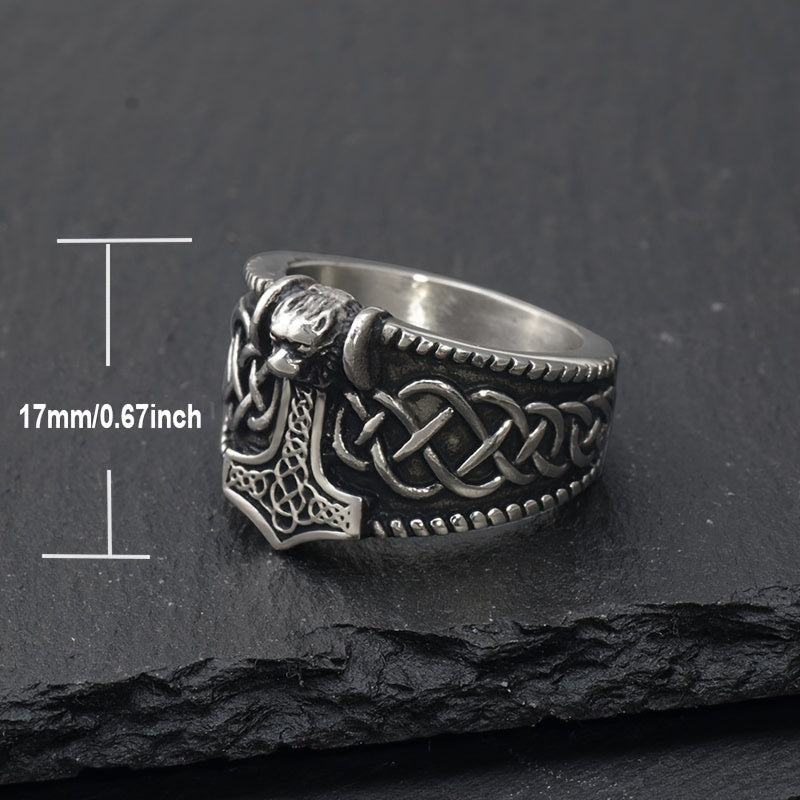 Men's Vintage Lion Head Thor's Hammer Ring Stainless Steel Amulet Jewelry