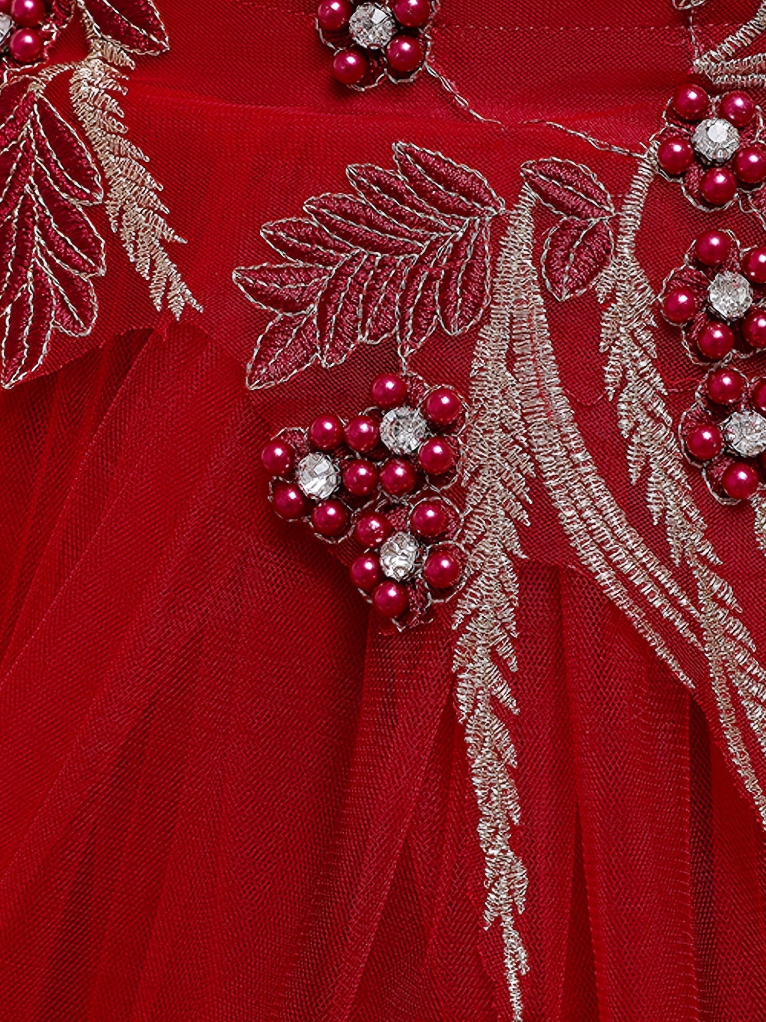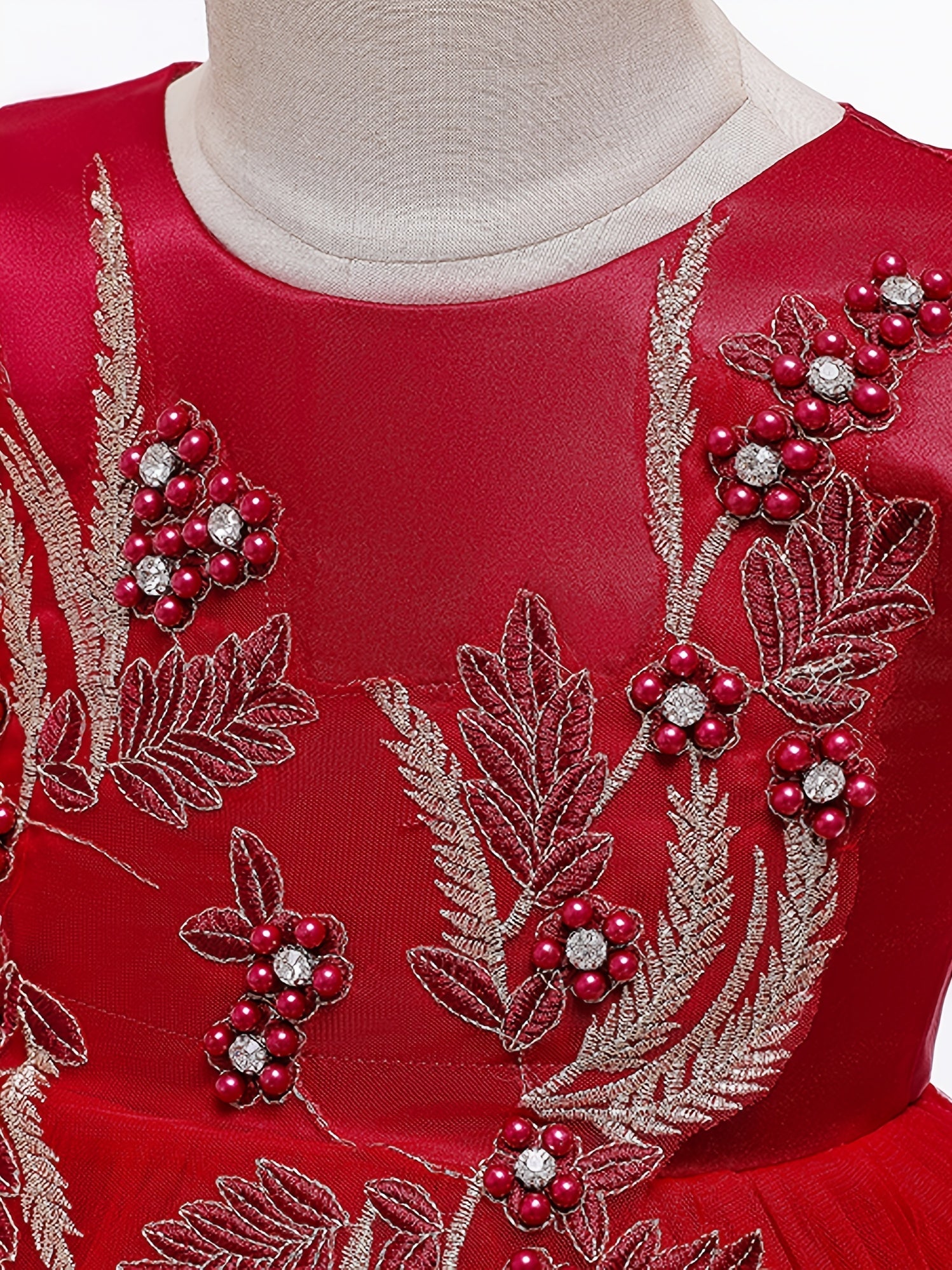 Girls Mesh Flower Embroidered Princess Dress with Fly Sleeve for Party