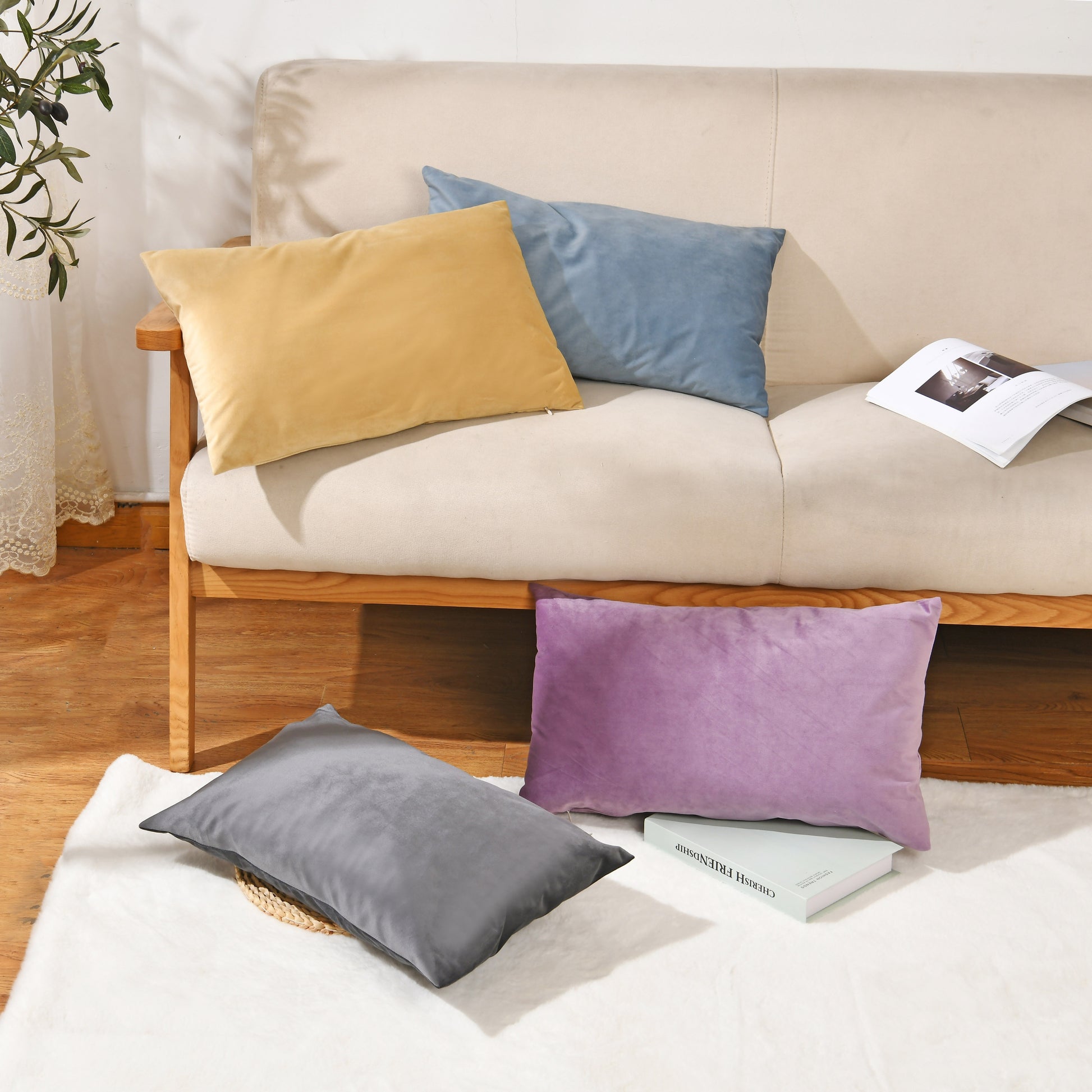 Velvet Throw Pillow Cover in Navy Blue Yellow-Green Orange Polyester Zipper Closure for Living Room Bedroom