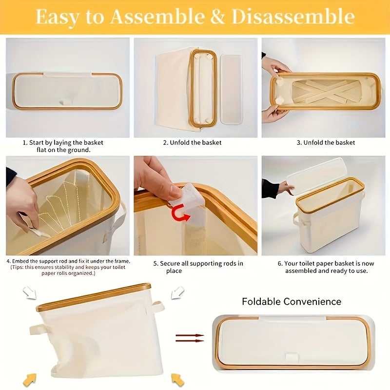Rectangular Bathroom Storage Basket with Lid and Slim Roll Dispenser for Towels and Accessories
