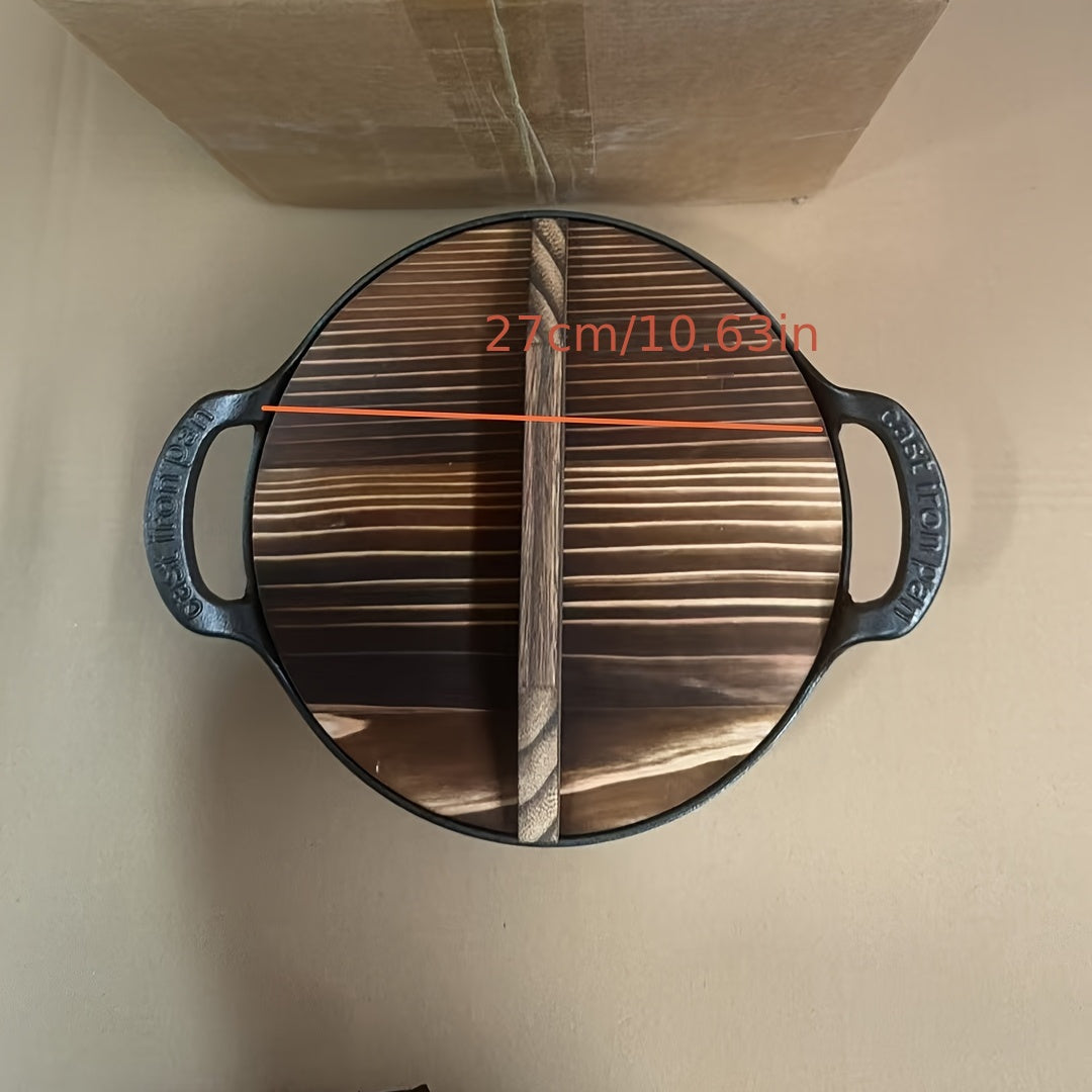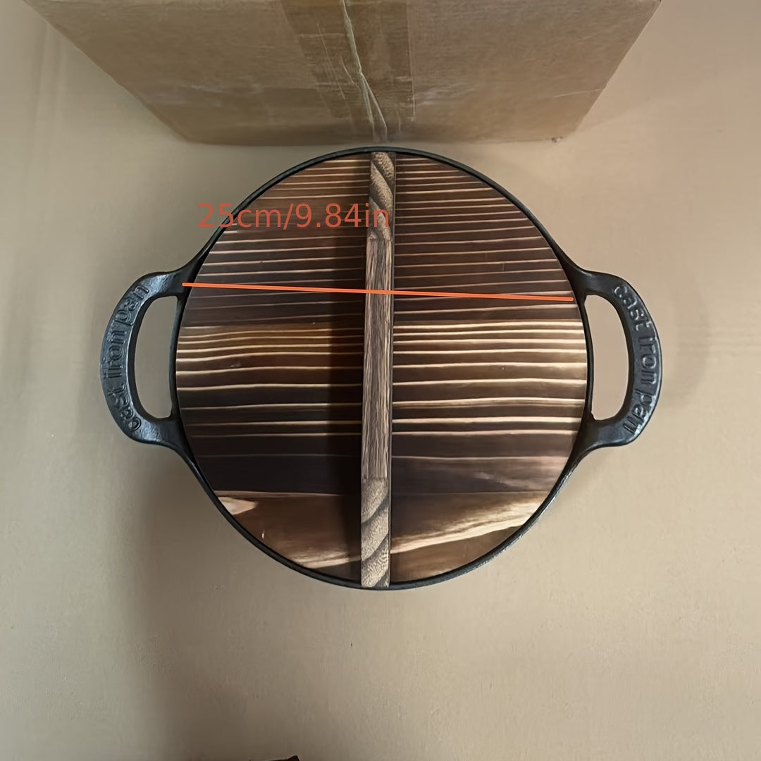 Cast Iron Skillet with Wooden Lid Oval 10 Inch for Searing Sautéing and Frying
