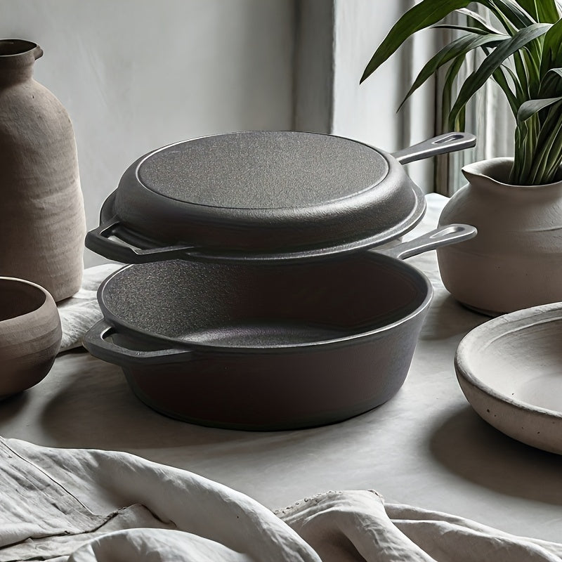 Cast Iron 2-in-1 Pot for Cooking and Camping Durable Outdoor Kitchen Equipment