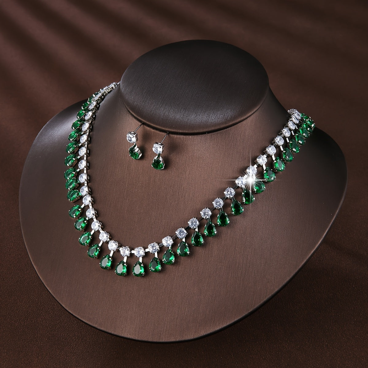 Elegant Jewelry Set for Women with Zirconia Earrings and Necklace for Weddings and Formal Events