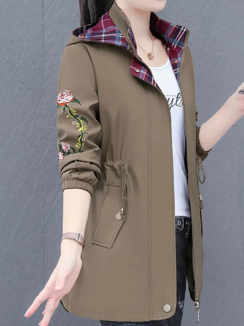 Women's Floral Hooded Jacket with Glossy Finish for Spring Fall Casual Weekend Wear