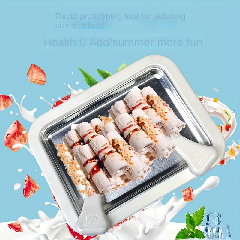 Mini Stir-Fried Yogurt Maker for Kids Small Ice Cream Machine with Stainless Steel Plate
