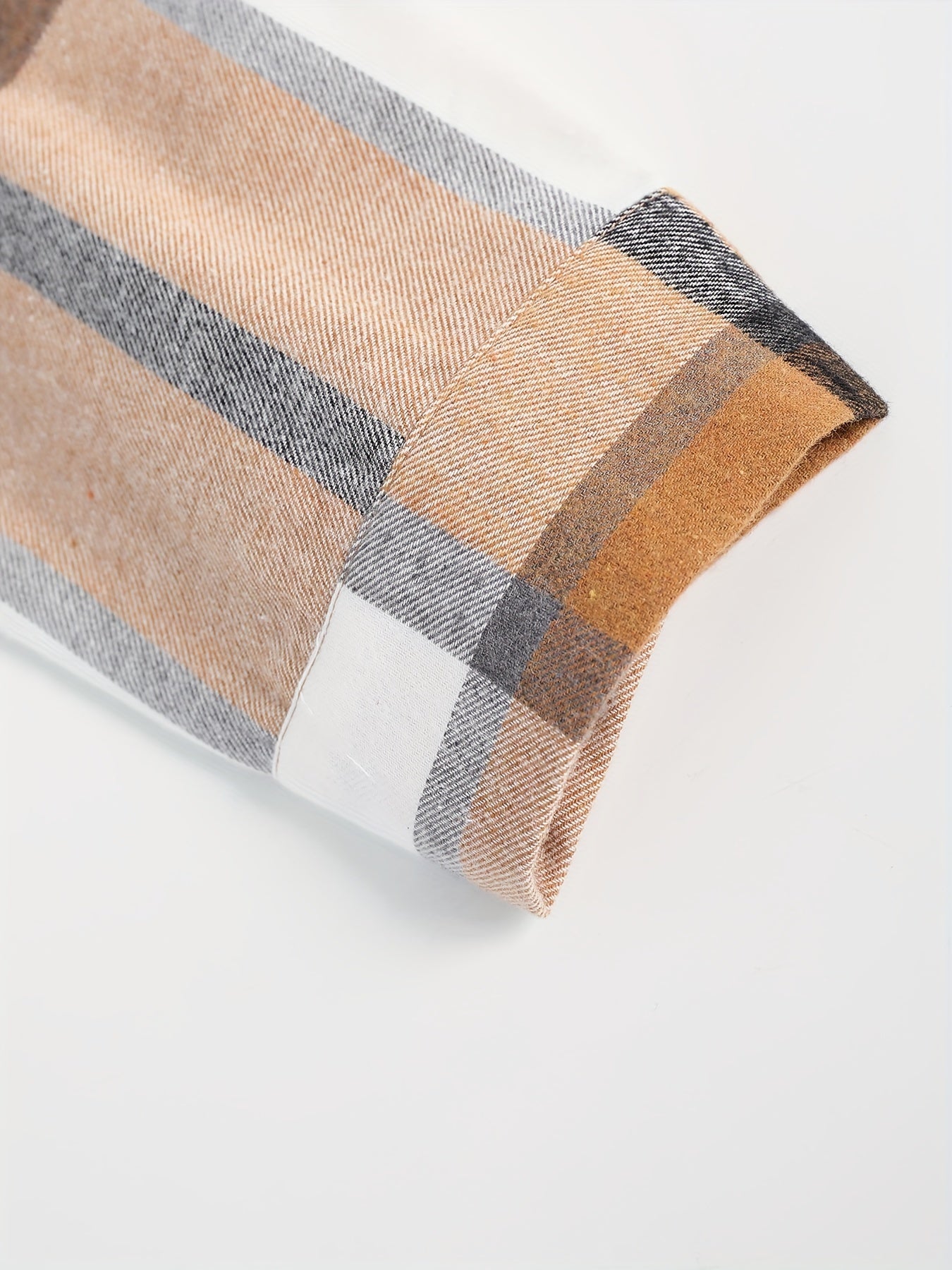 Plus-Size Men’s Plaid Long-Sleeve Shirt Polyester Casual Spring Fall