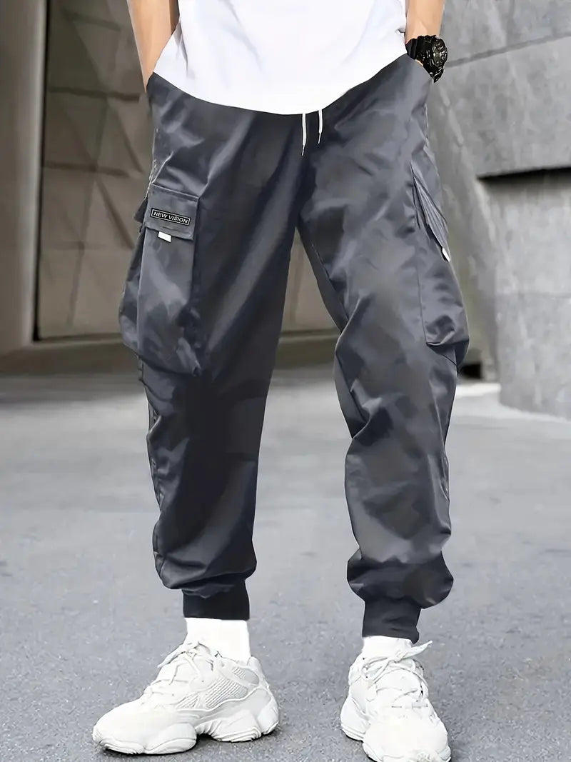 Plus Size Men's Cargo Joggers Woven Polyester Casual Drawstring Solid