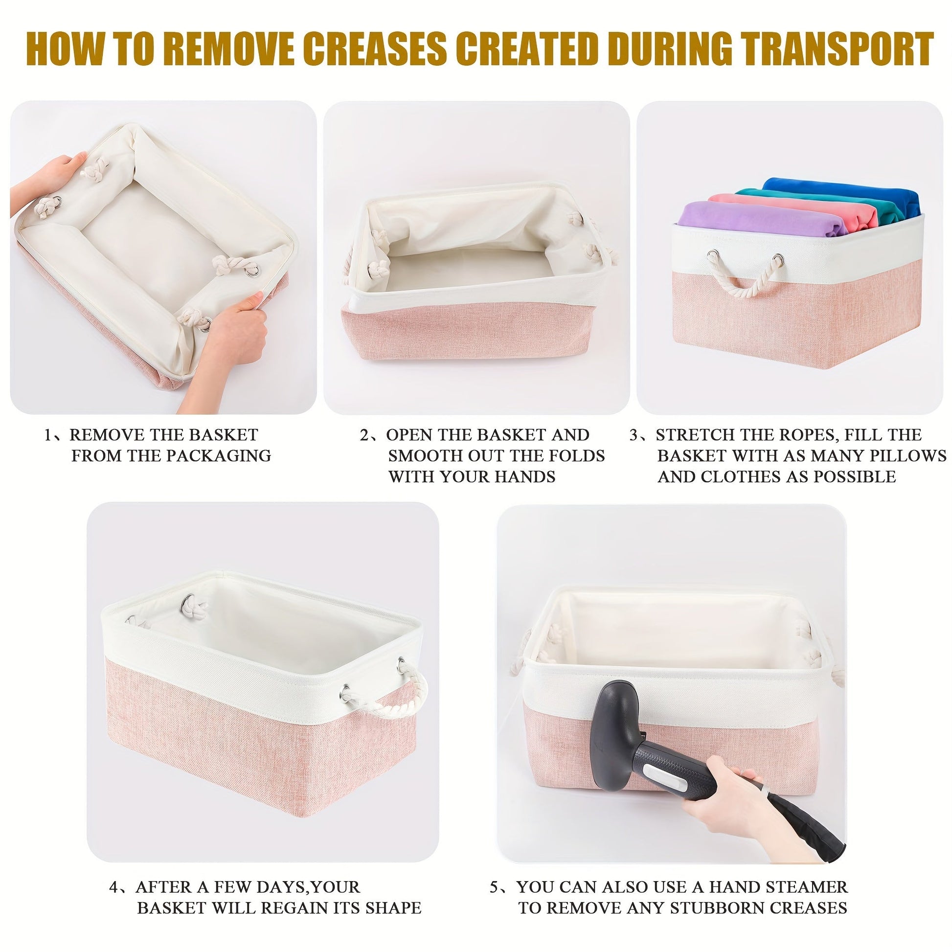 Foldable Home Storage Basket with Handle for Shelves and Wardrobes, Multi-Use