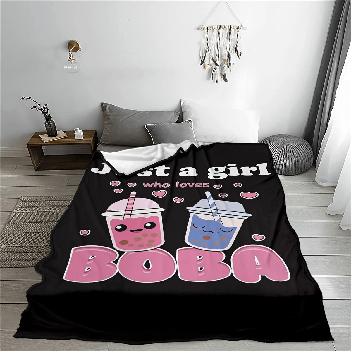 Anime Boba Milk Tea Fleece Blanket for Girls Soft Plush Flannel Bed Chair Throw