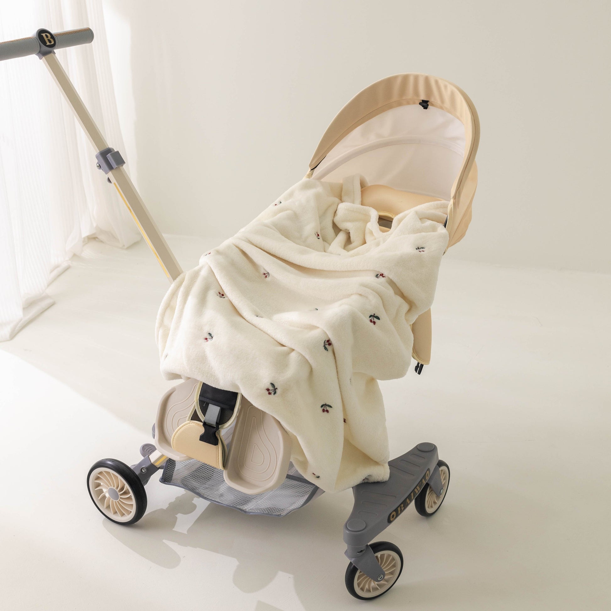 Beige Embroidered Blanket Throw for Warmth and Comfort Versatile Travel Stroller Cover