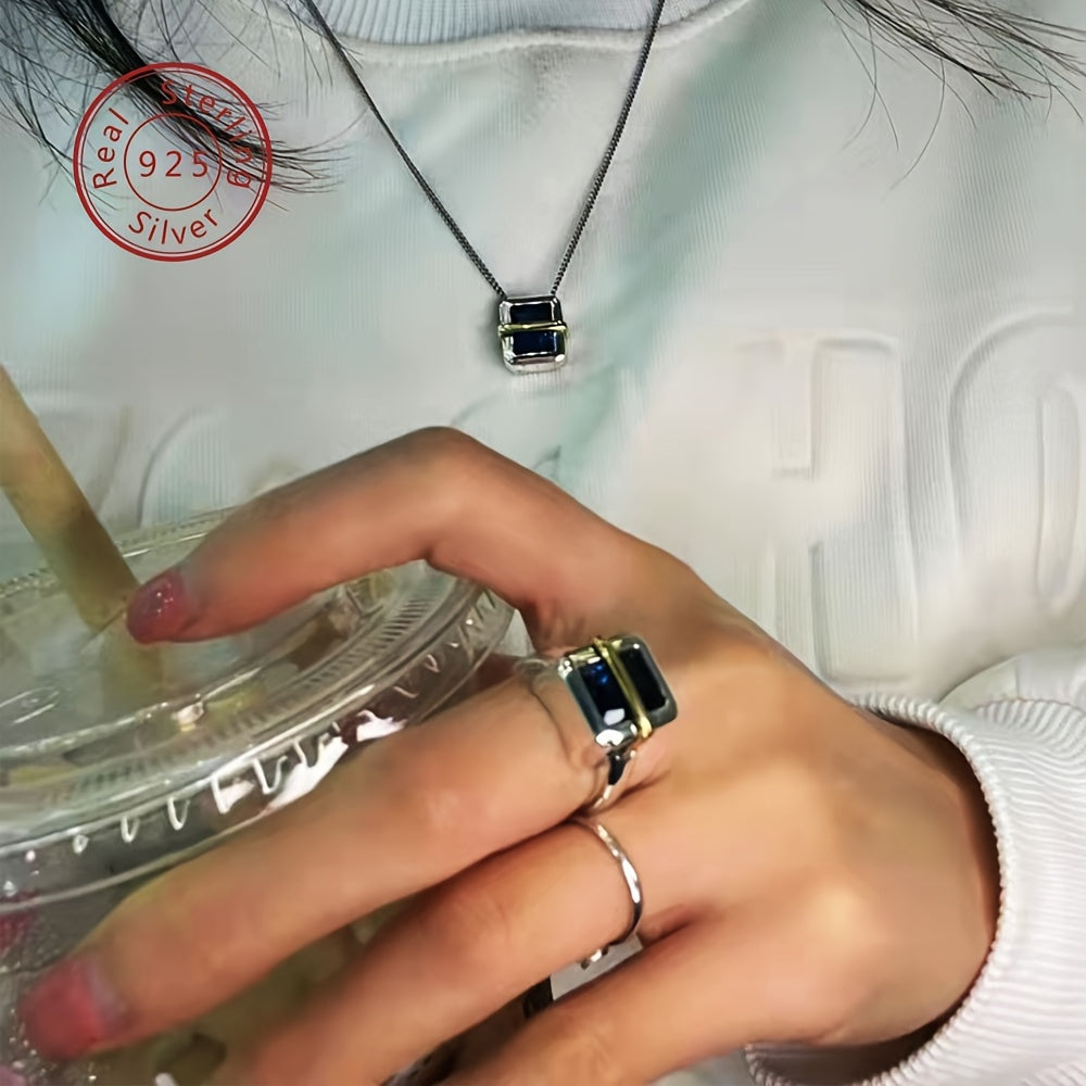 Sterling Silver Square Ring for Women with Blue Artificial Diamond Jewelry Gift