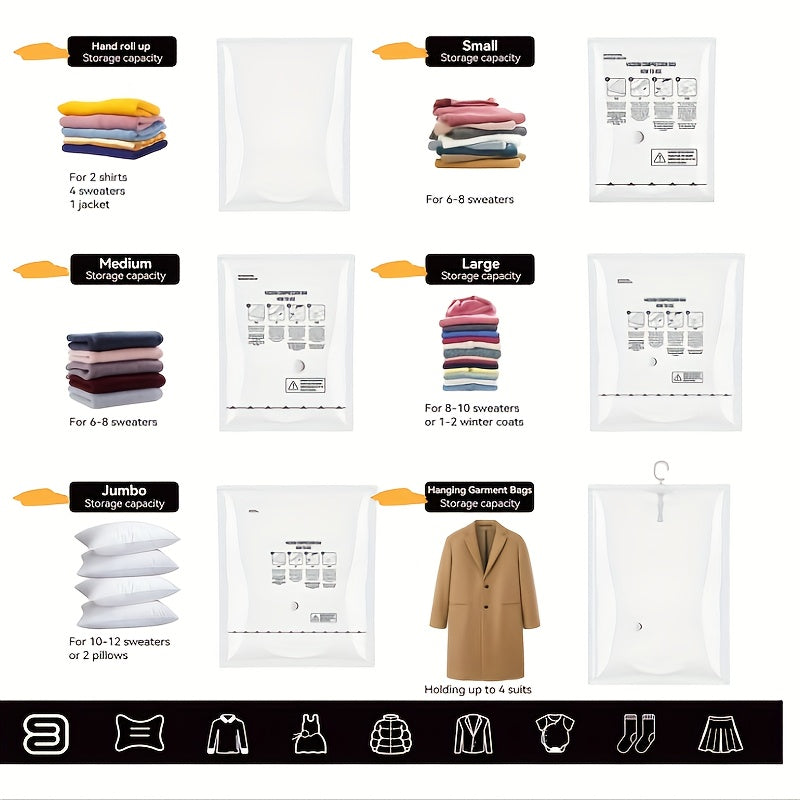 4/8 Piece Storage and Organization Bag Set with Manual Pump for Closet Space Saving