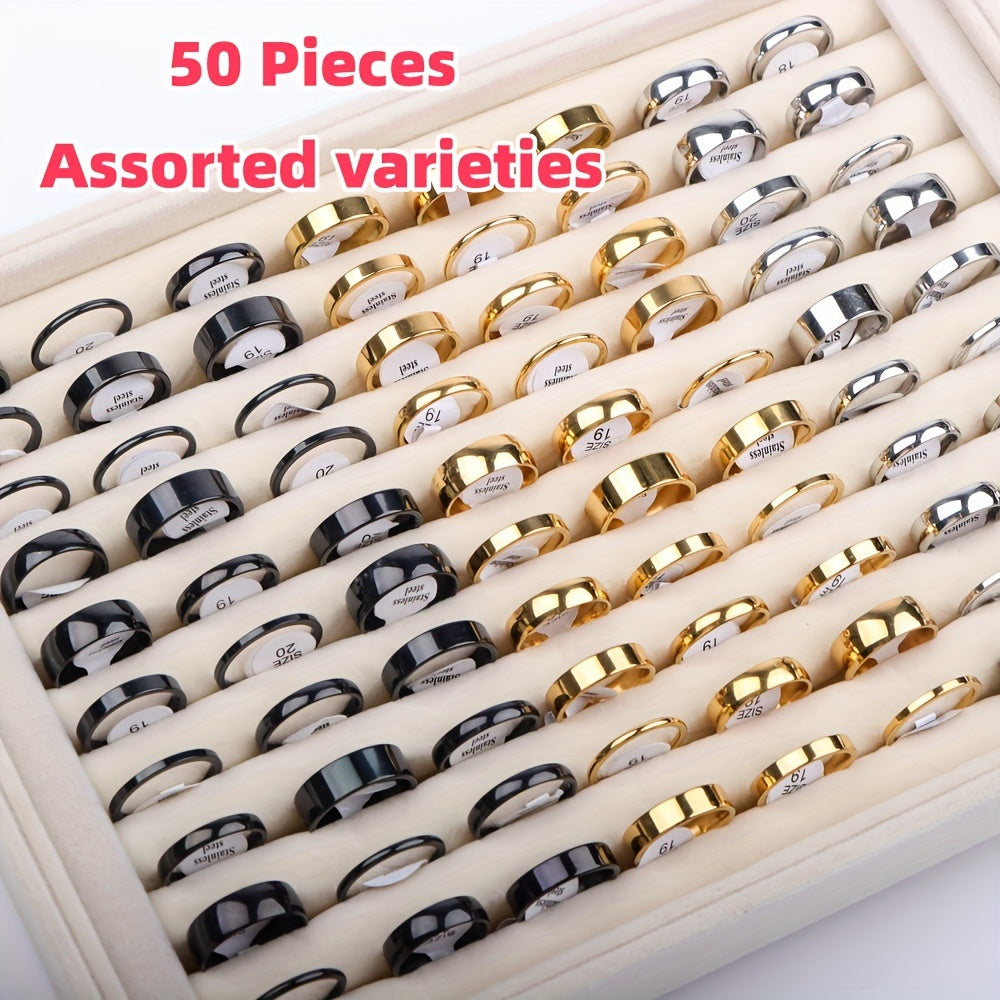 Women's Stainless Steel Rings Pack of 30/50 Minimalist Smooth 2-8mm for Engagements and Weddings