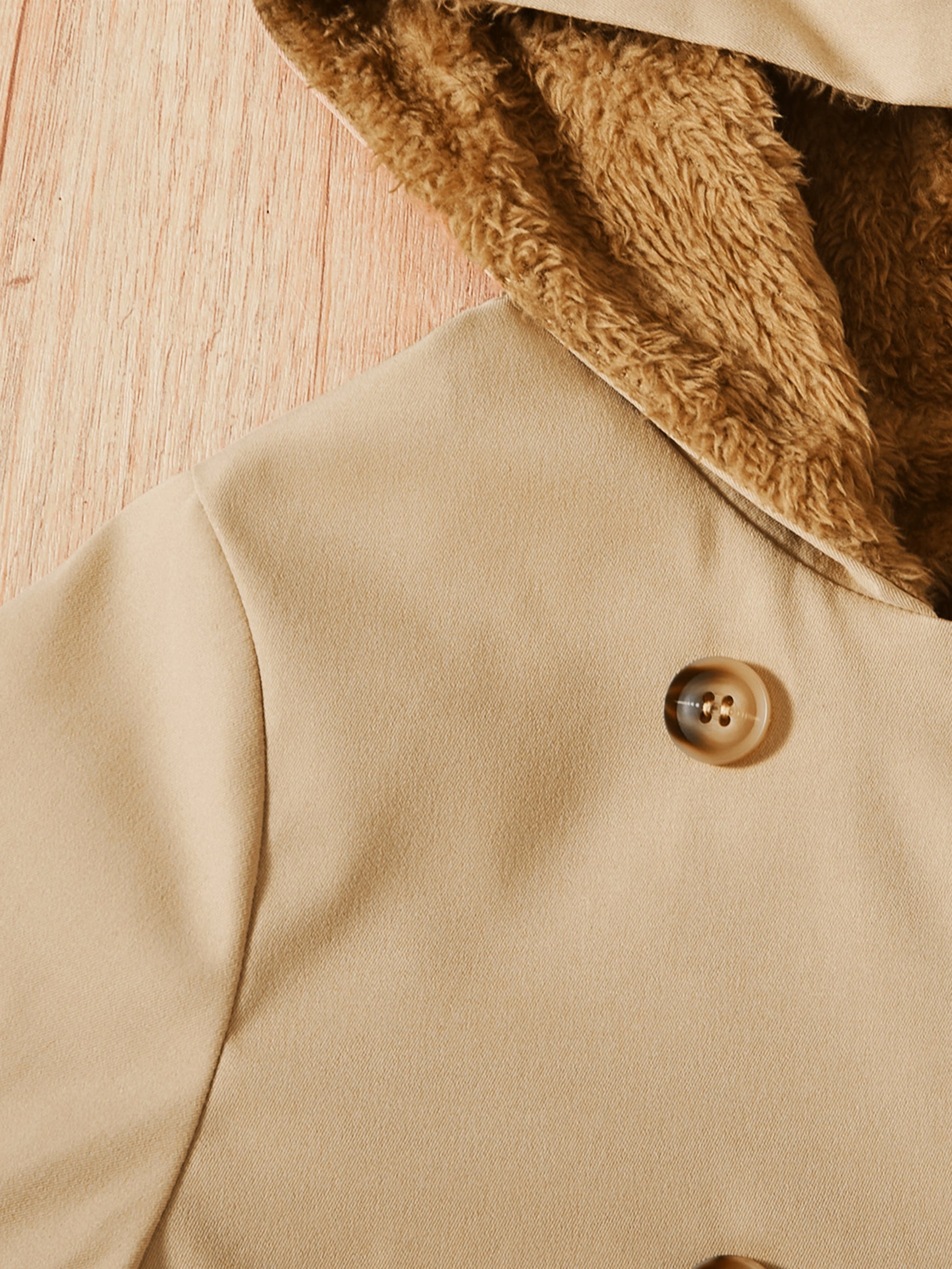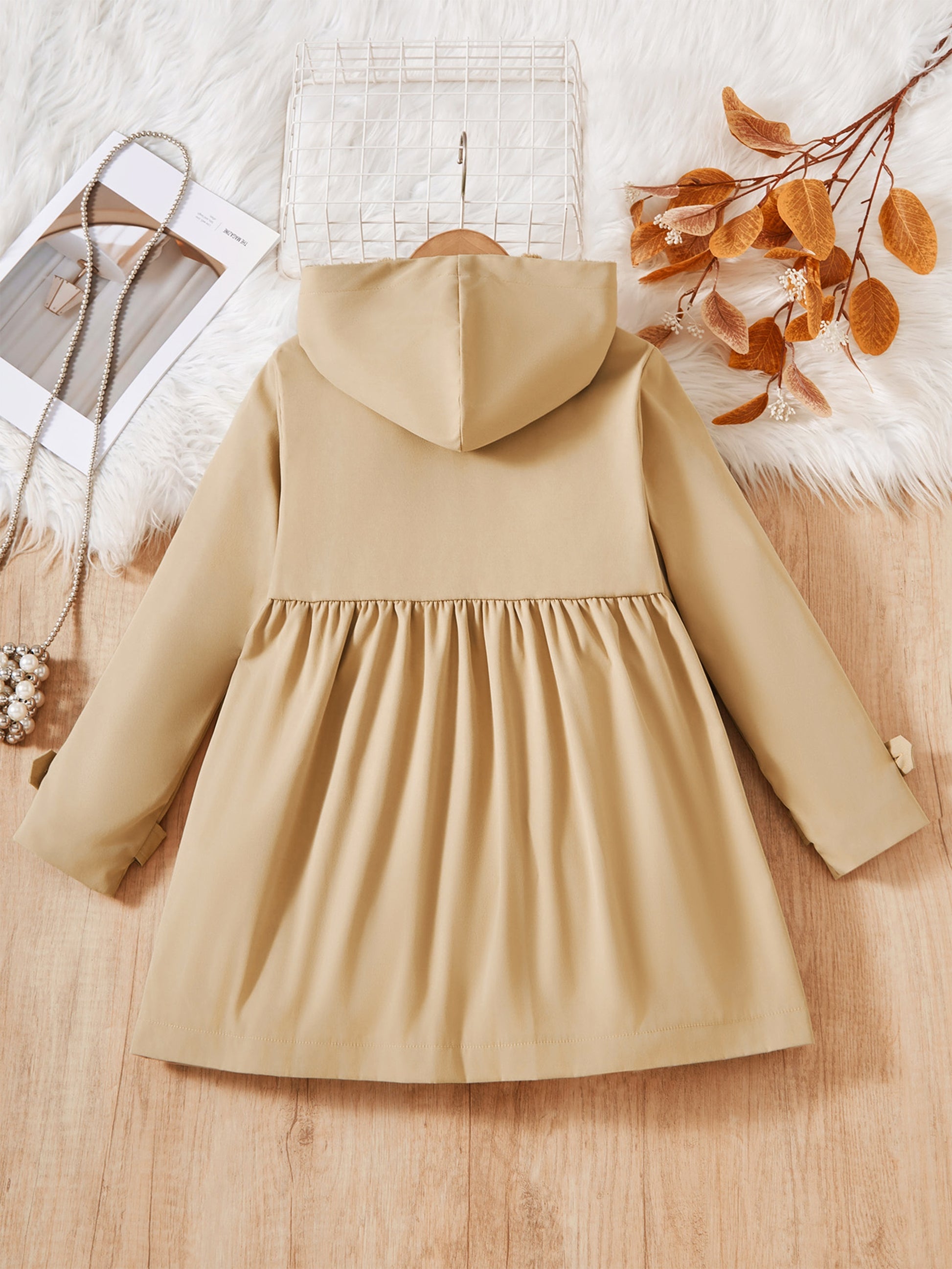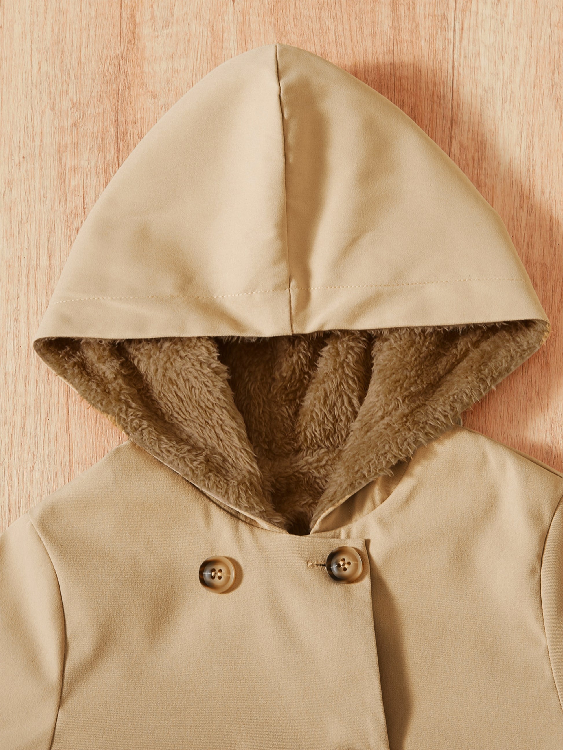 Girls Hooded Padded Coat Lightweight Double-Breasted Fall Winter Solid Polyester