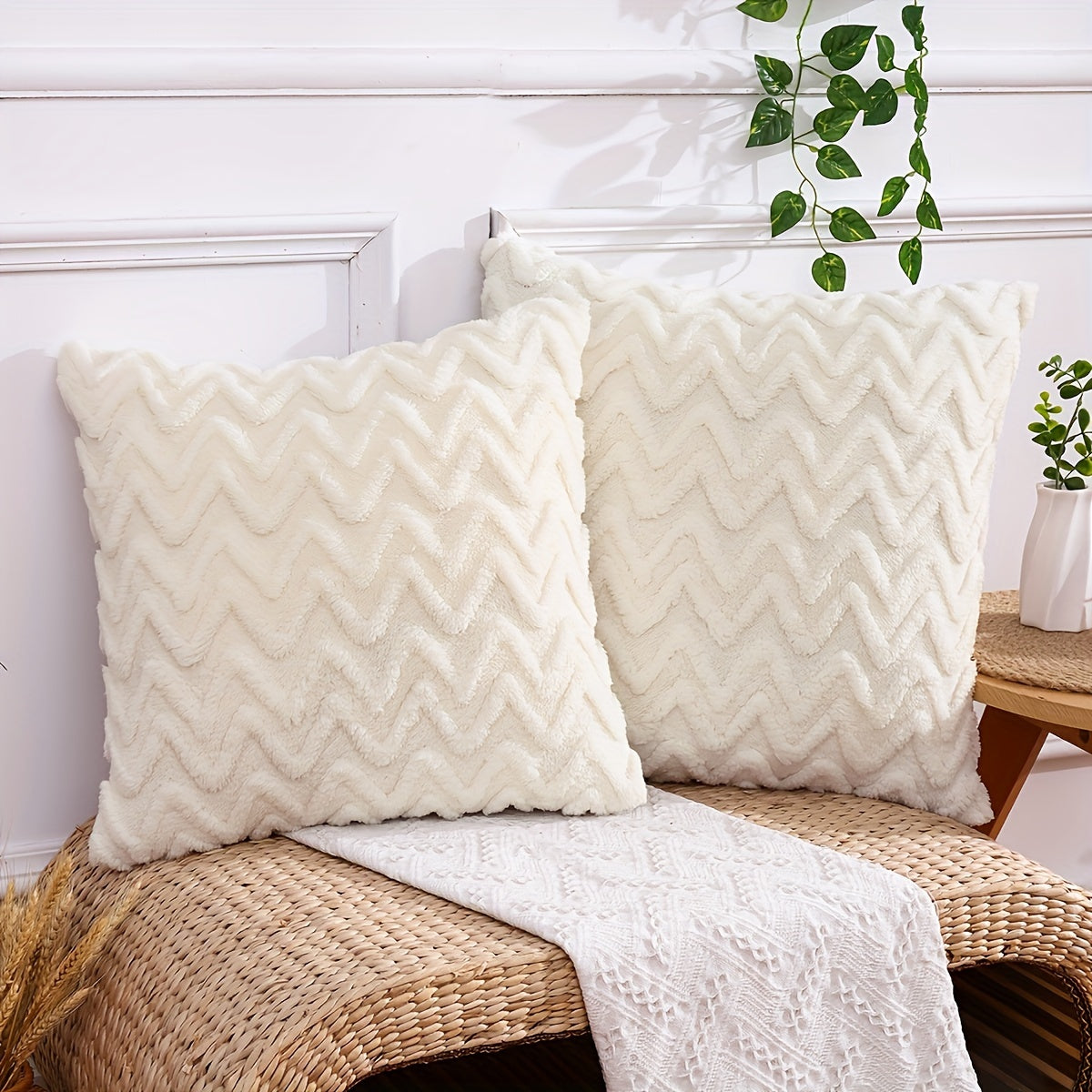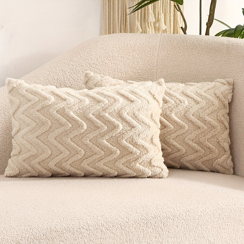 Pair of Beige Geometric Pattern Throw Pillow Covers 100% Polyester Zipper Closure