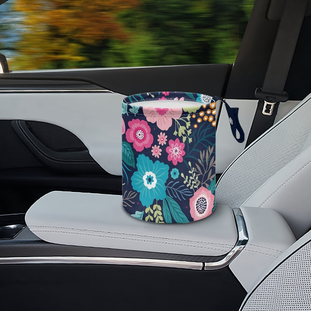 Pink Flowers Car Trash Can Dustbin for Travel and Interior Storage